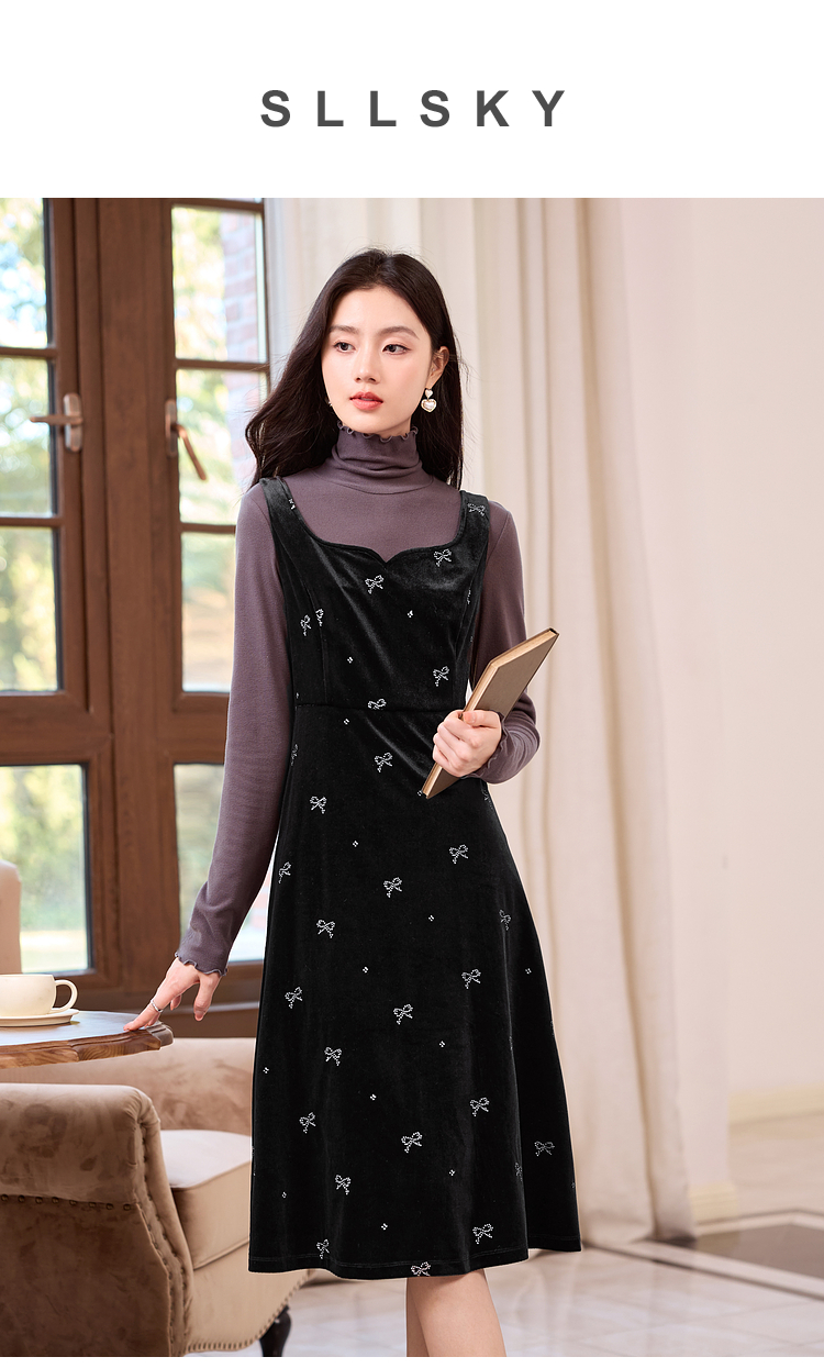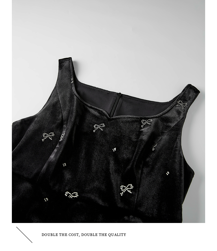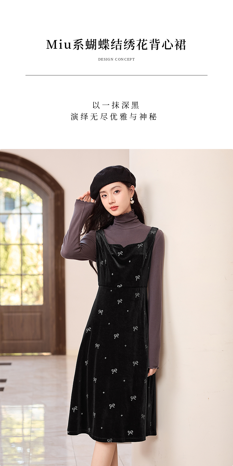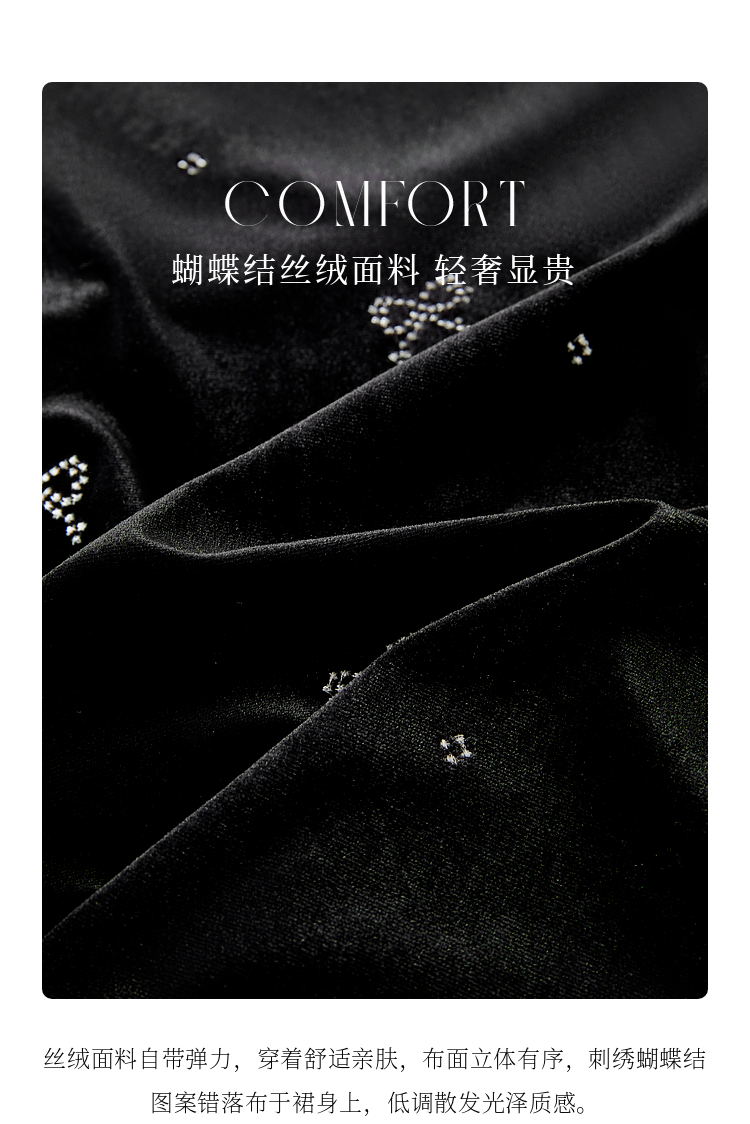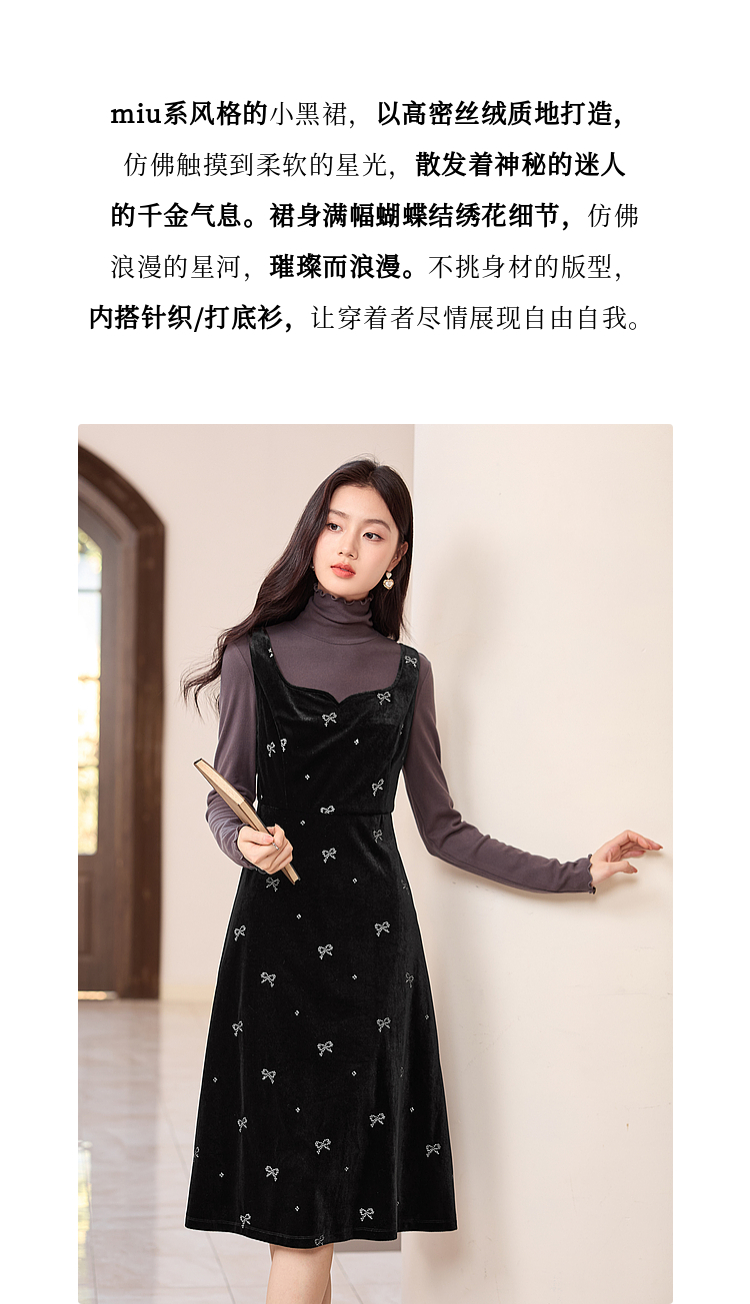 【年终特卖】熙世界黑色复古刺绣丝绒吊带长裙女秋冬季法式优雅无袖背心连衣裙