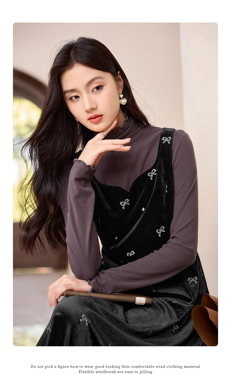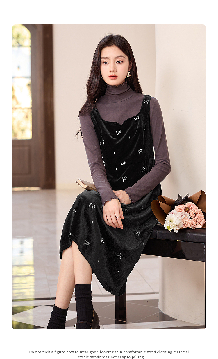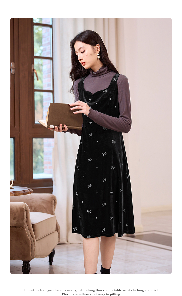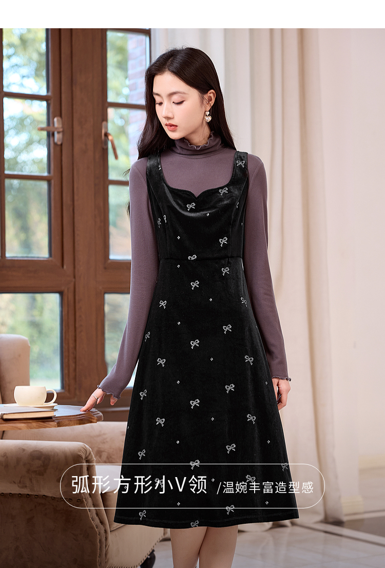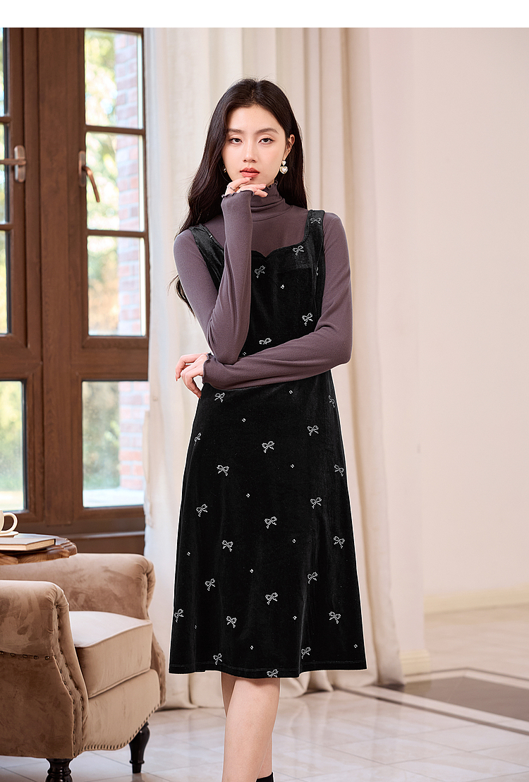 【年终特卖】熙世界黑色复古刺绣丝绒吊带长裙女秋冬季法式优雅无袖背心连衣裙