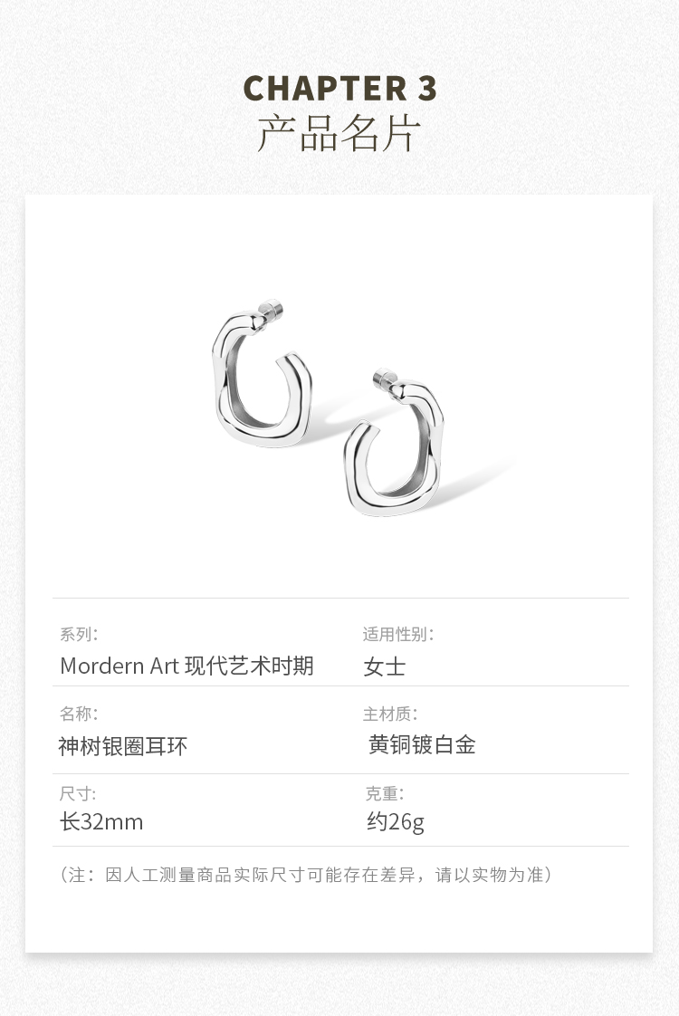 【宋佳&单依纯&张婧仪&刘芳菲&于明加&刘孜同款】Retro Chic意大利复古时尚首饰 神树银圈耳环