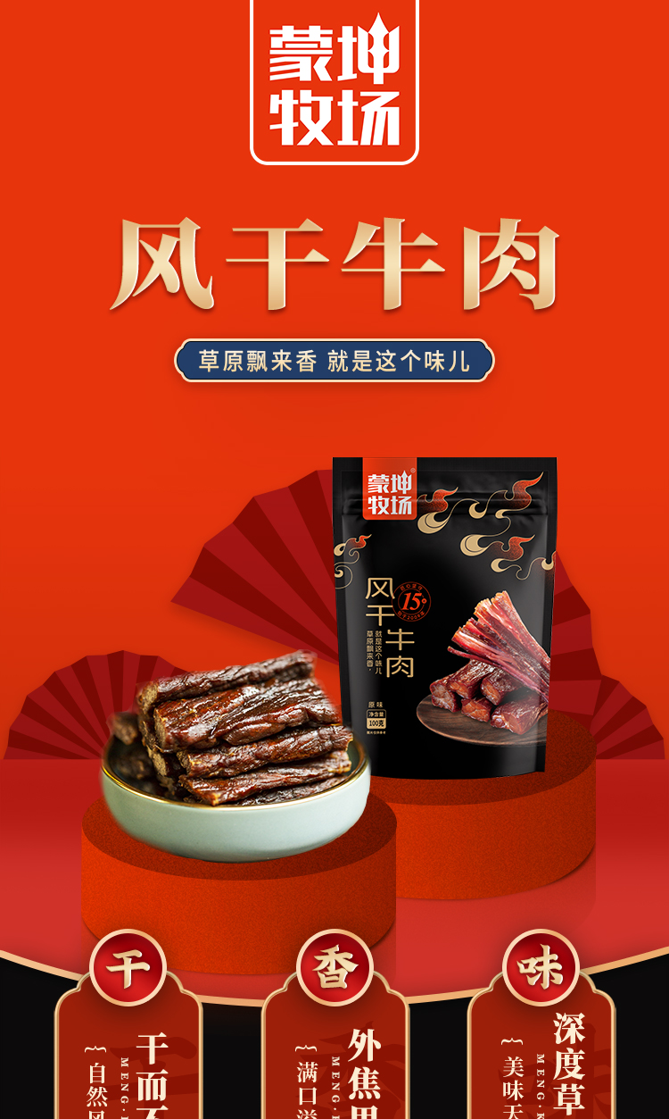 蒙坤牧场现烤牛肉干食品旗舰店