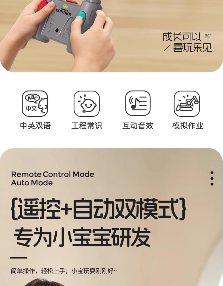 汇乐早教遥控工程车1-3岁挖掘机汽车玩具模型推土机遥控玩具车