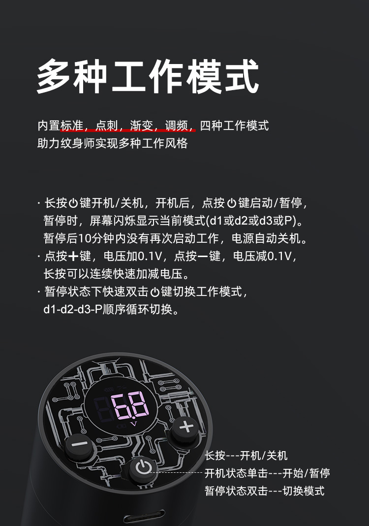 点刺调频无线纹身电源DW3迷你变压器马达笔刺青电池 惊蛰纹身器材