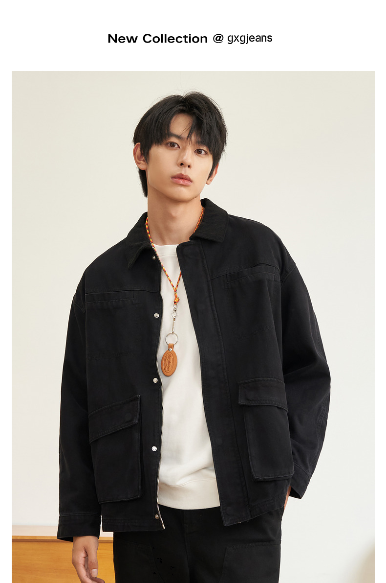 gxg.jeans男装冬季单色简约翻领设计牛仔夹克JED1E800084