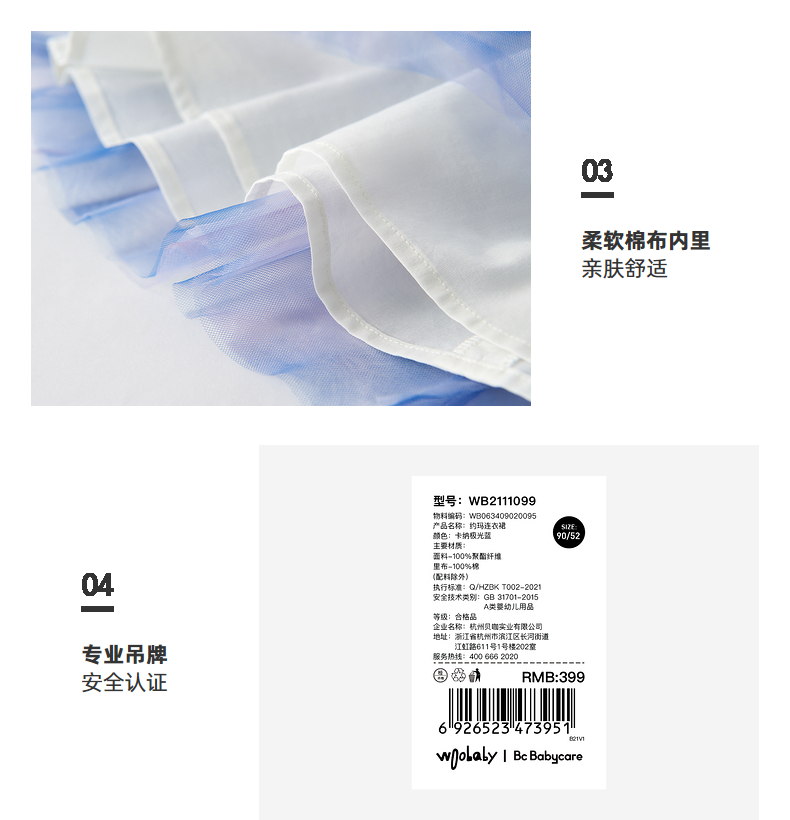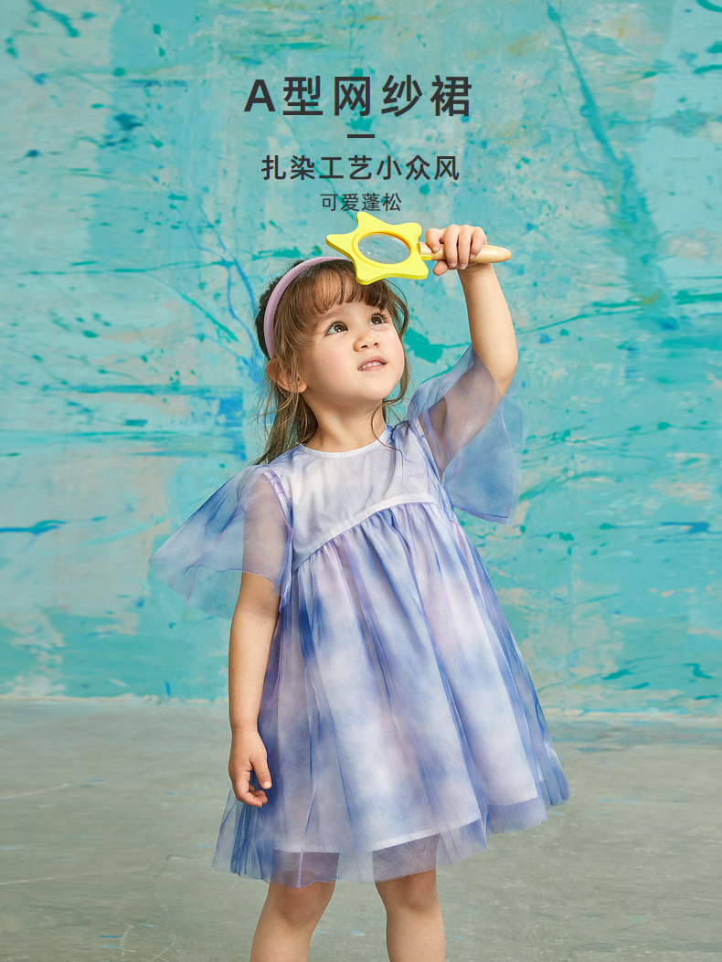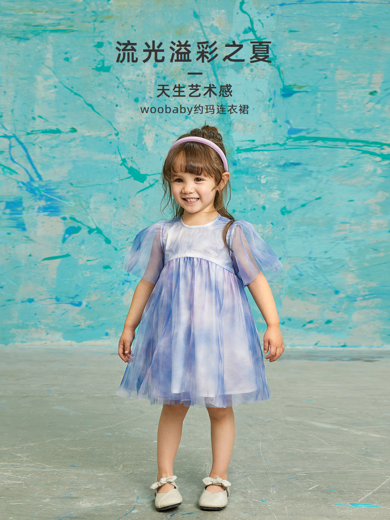 babycare童装woobabyA型网纱连衣裙22夏新品纱裙