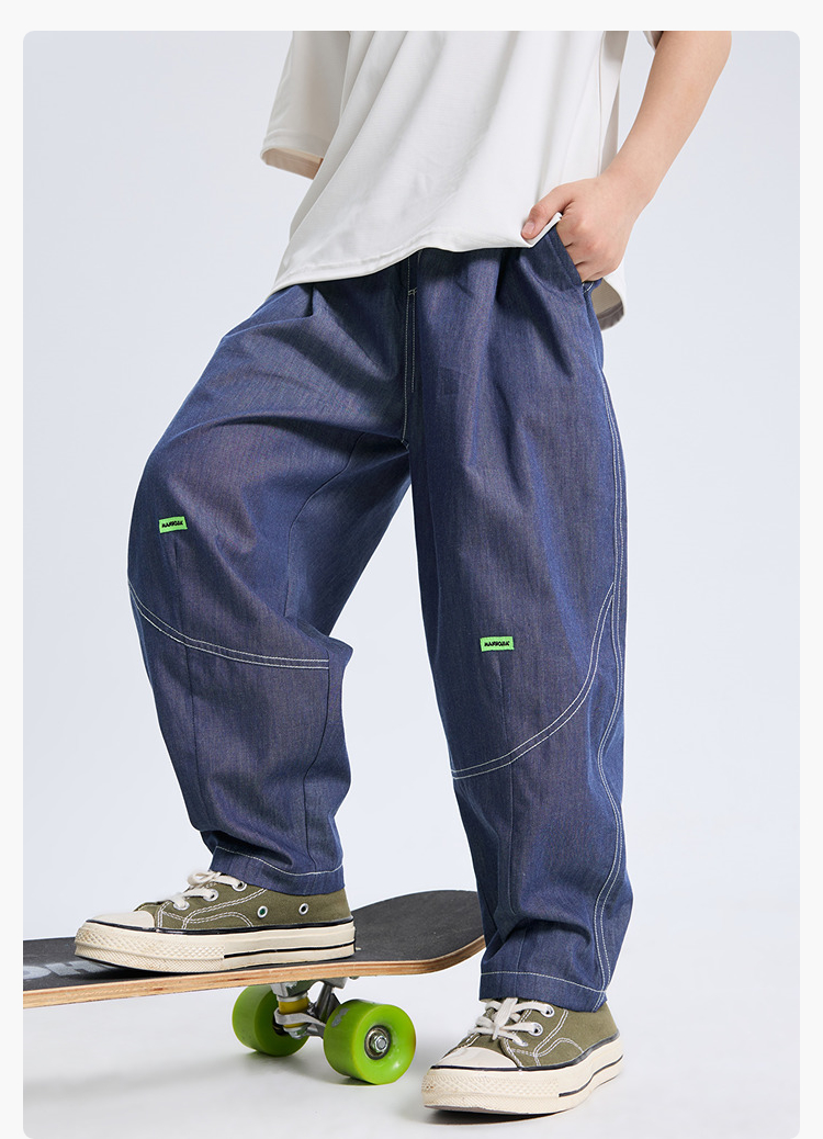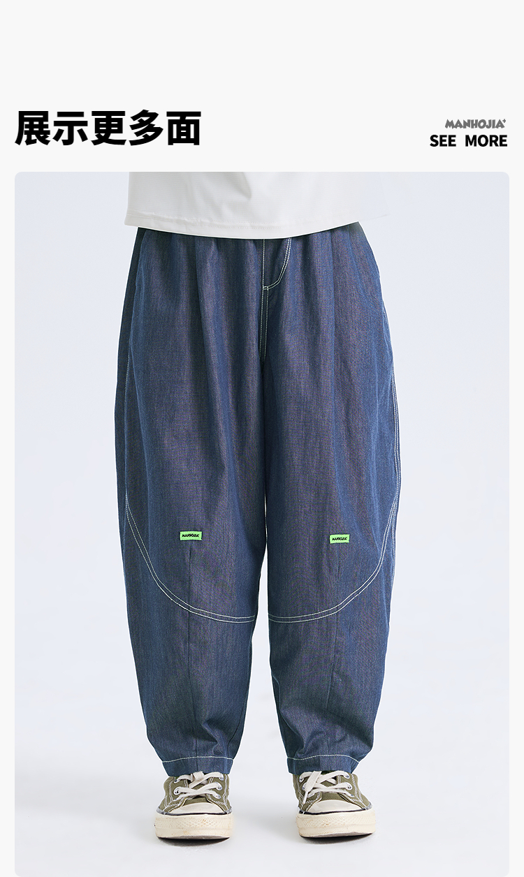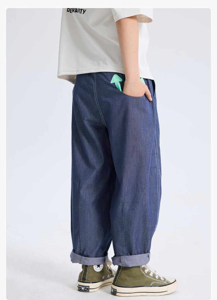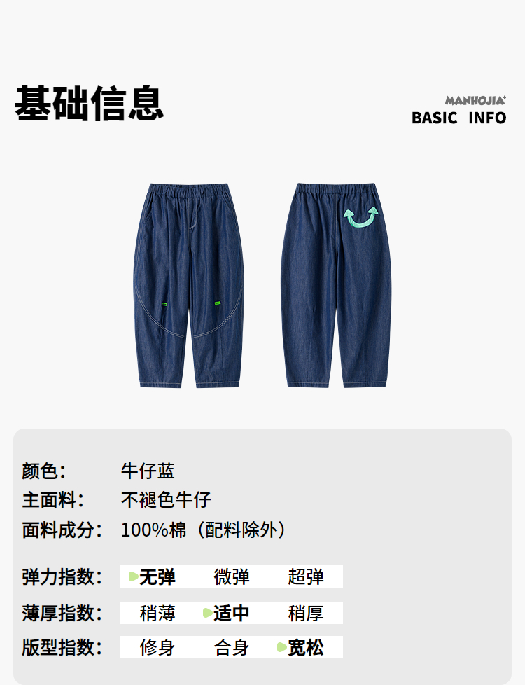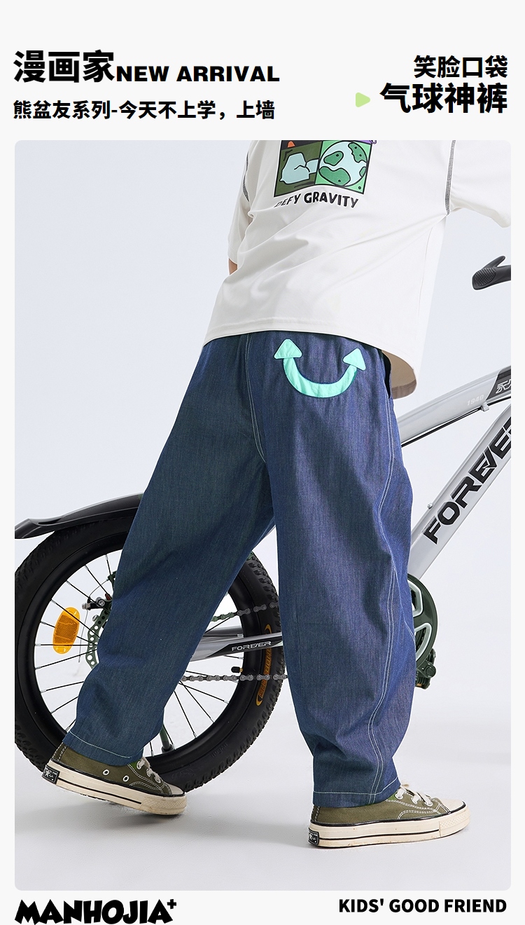 漫画家【酷酷笑脸裤】夏季薄款不褪色牛仔笑脸气球裤牛仔长裤夏