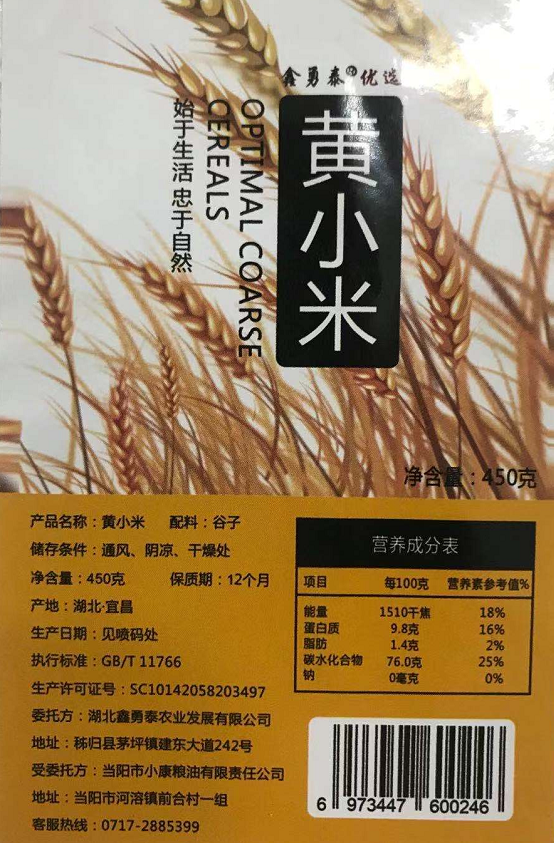 秭归县【鑫勇泰】原生态农家黄小米450g/袋