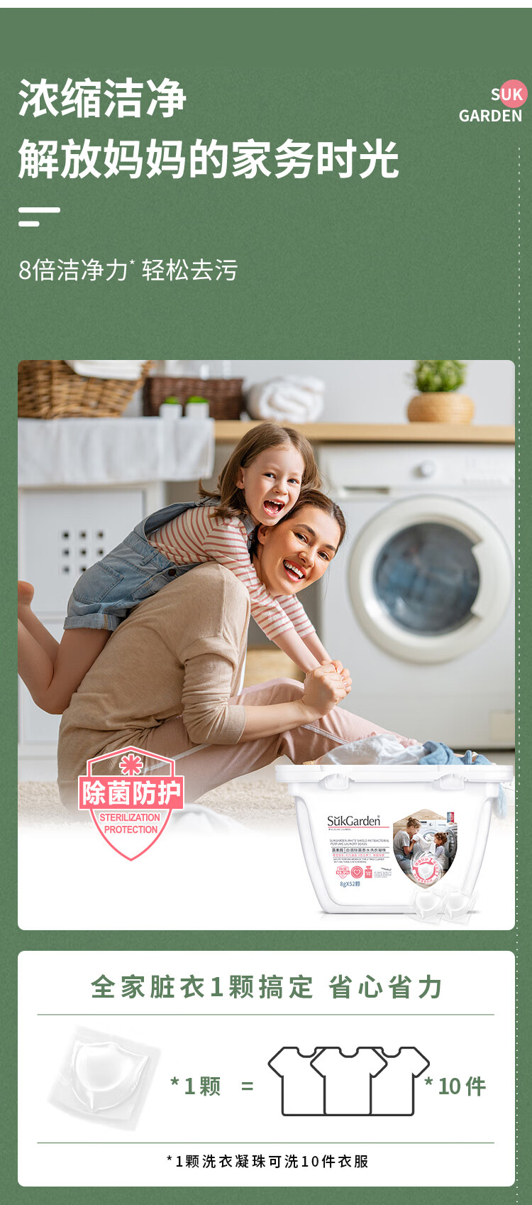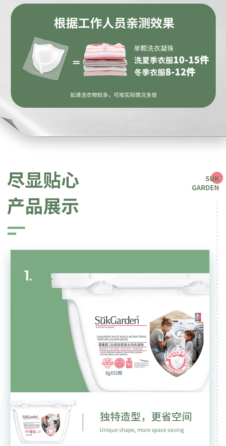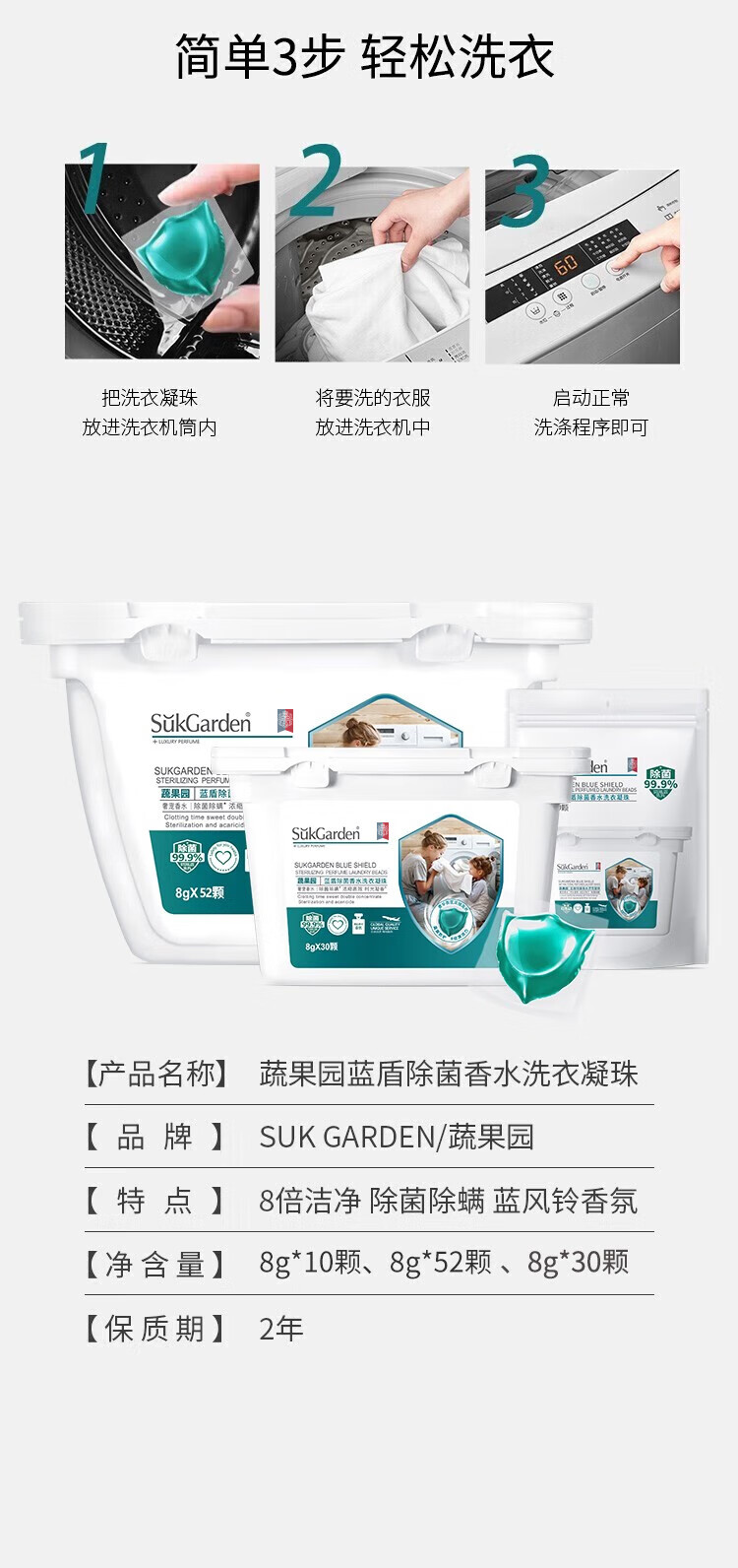 【分仓直发包邮】SukGarden蔬果园蓝盾除菌香水洗衣凝珠-8g*52颗