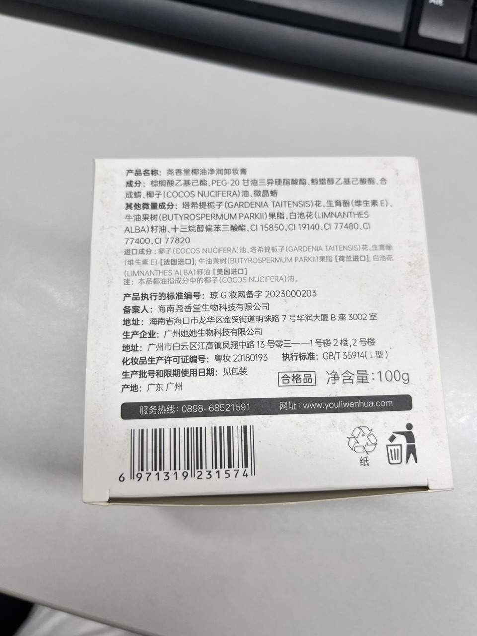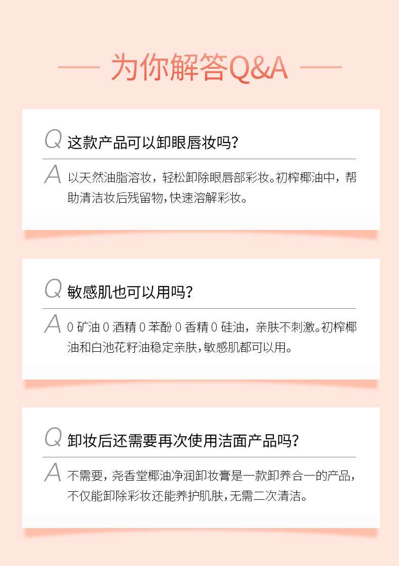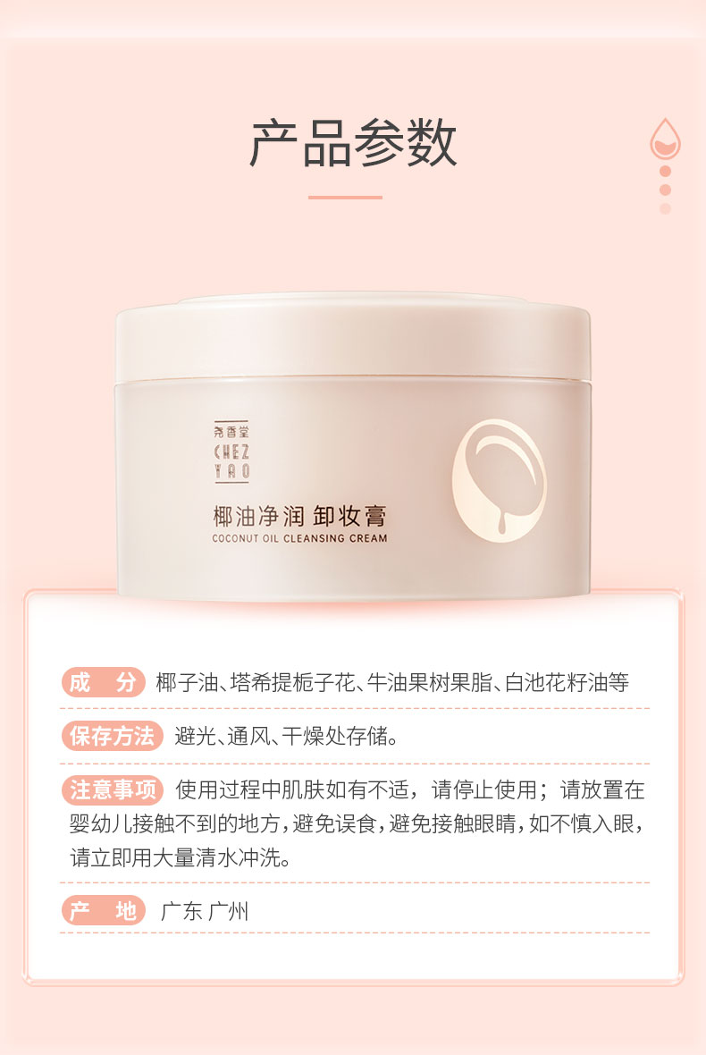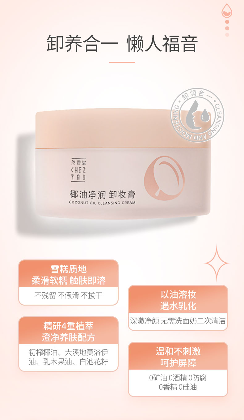 尧香堂椰子油净润卸妆膏面部清洁保湿卸妆脸部旅行便携化妆品100g