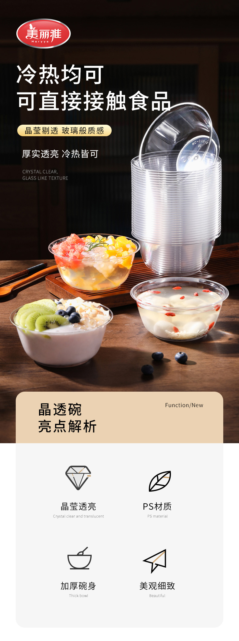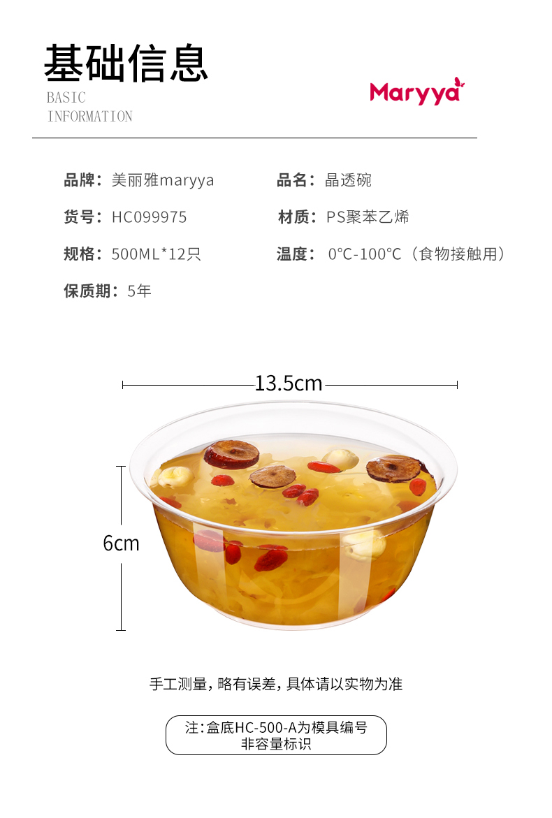 【批发】美丽雅晶透碗500ml*12只入