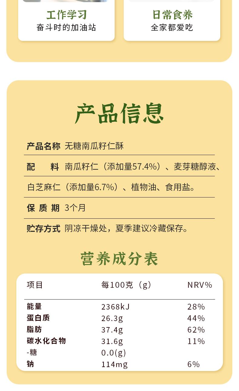 【2份减10元】无糖南瓜籽酥 蛋白质是牛奶的8倍 富含多种矿物质 无添加 美味又健康 150g/袋