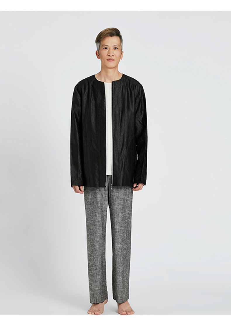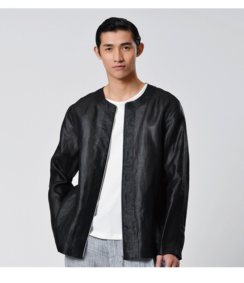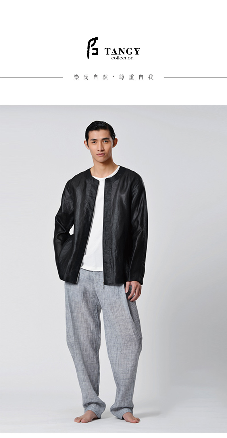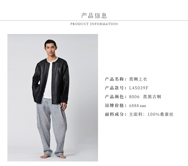 TANGY Collection/天意精品春秋新品香云纱男士夹克真丝莨绸外套