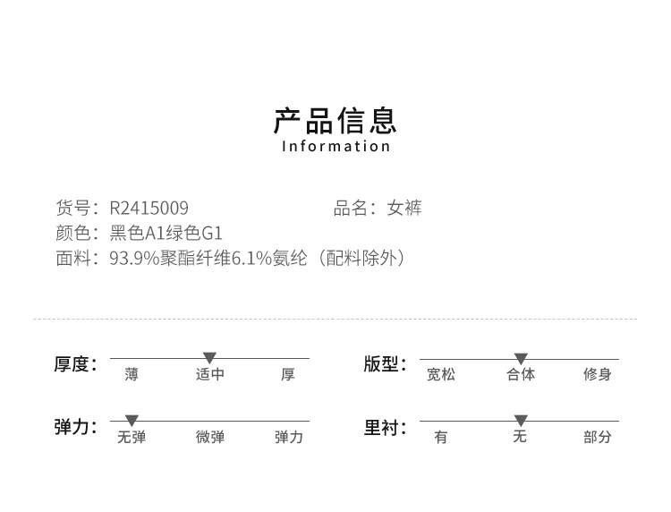 VIVIAN LIU薇薇安刘R2415003春女装新款后腰松紧斜插兜直筒裤