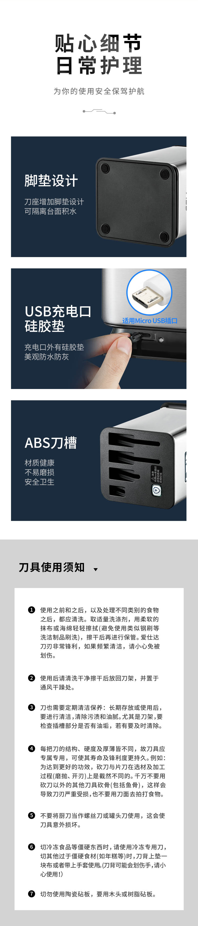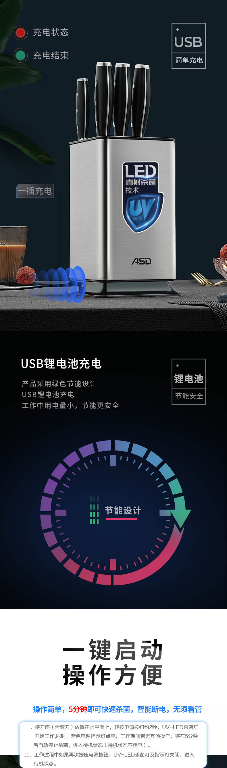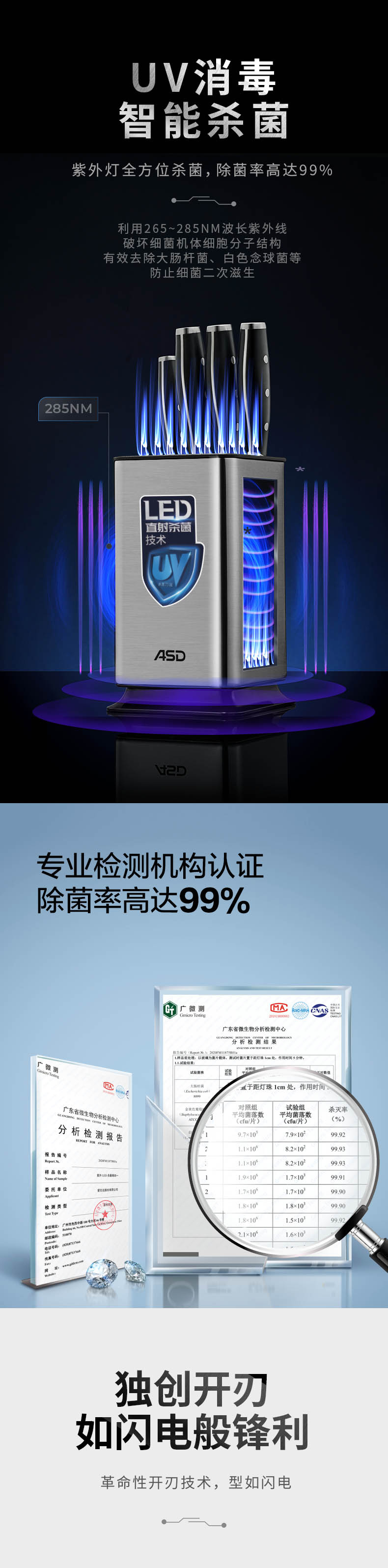 爱仕达 RDG05S2Q 家用套刀五件套LED紫外线杀菌消毒菜刀切片刀套装【全国】