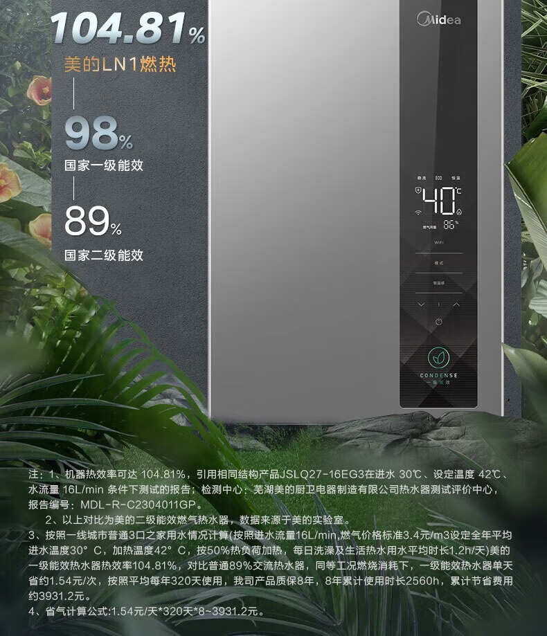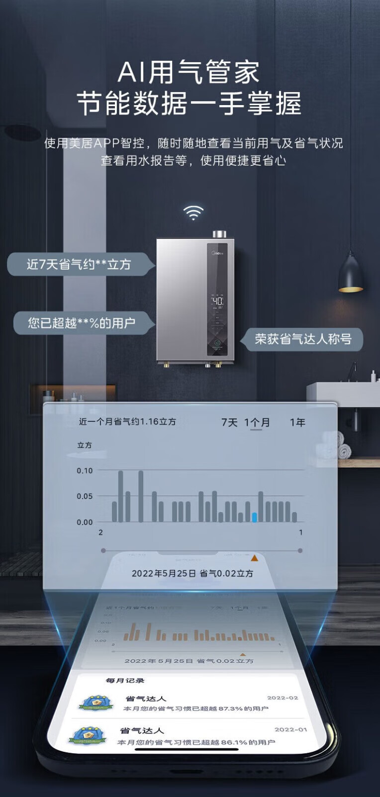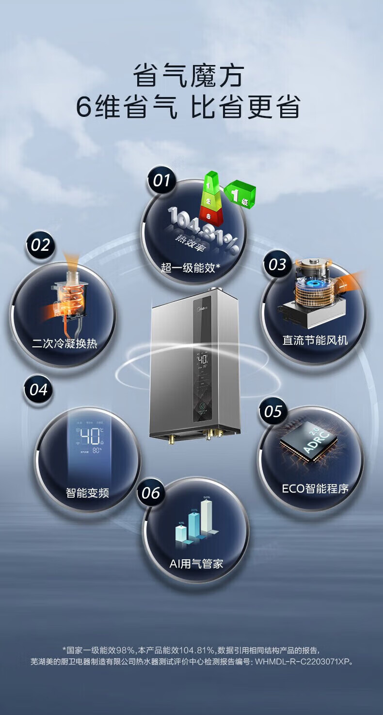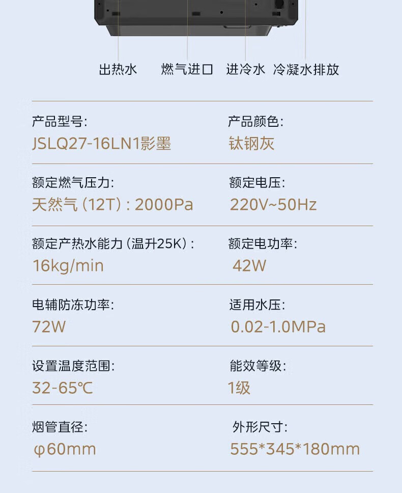A美的 燃气热水器JSLQ27-16LN3一级能效 强排式 天然气(12T) 16L节能增压零冷水