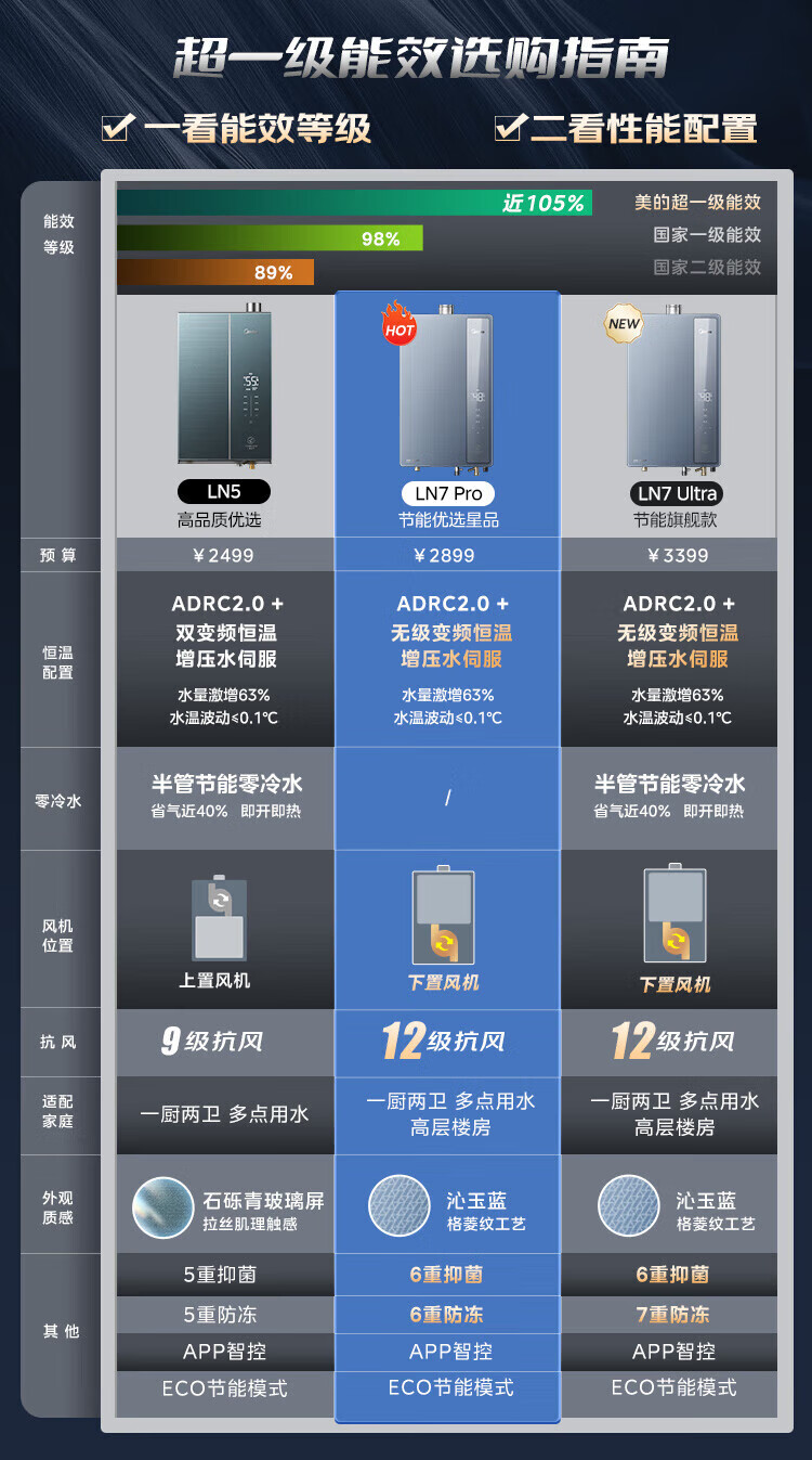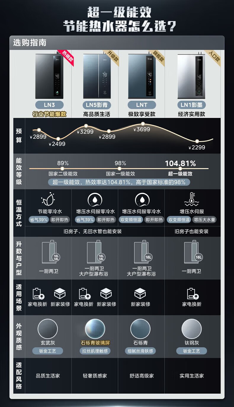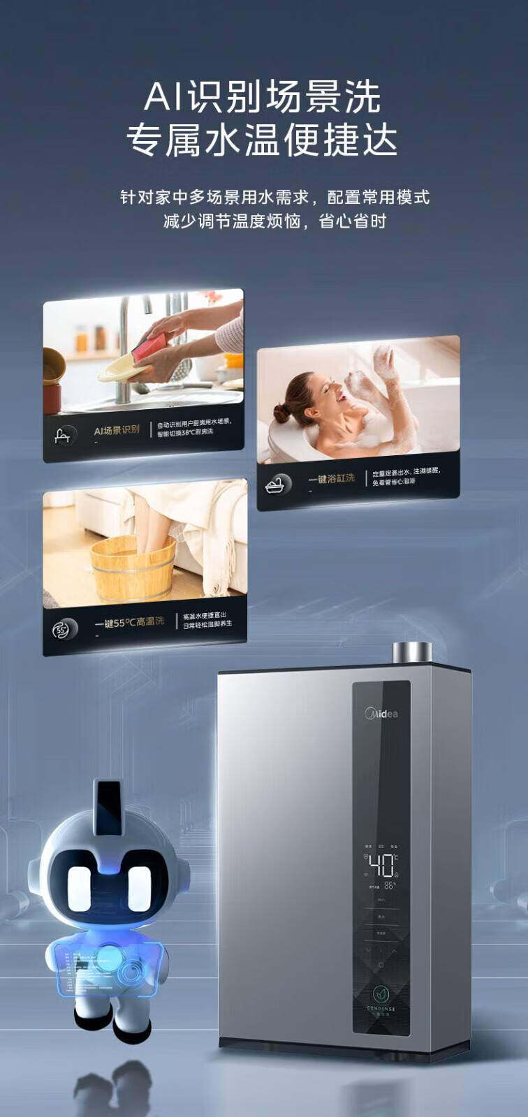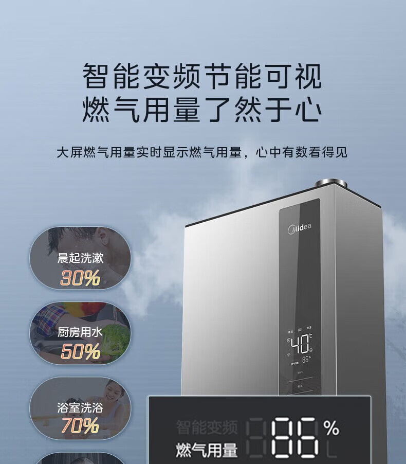 A美的 燃气热水器JSLQ27-16LN3一级能效 强排式 天然气(12T) 16L节能增压零冷水