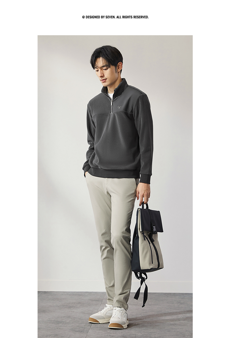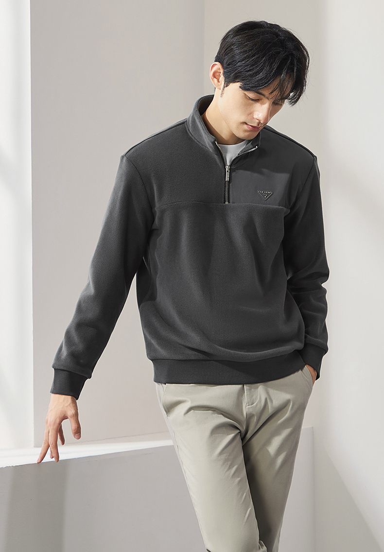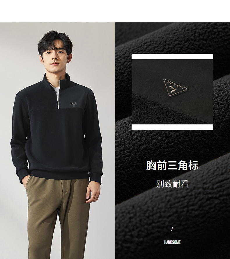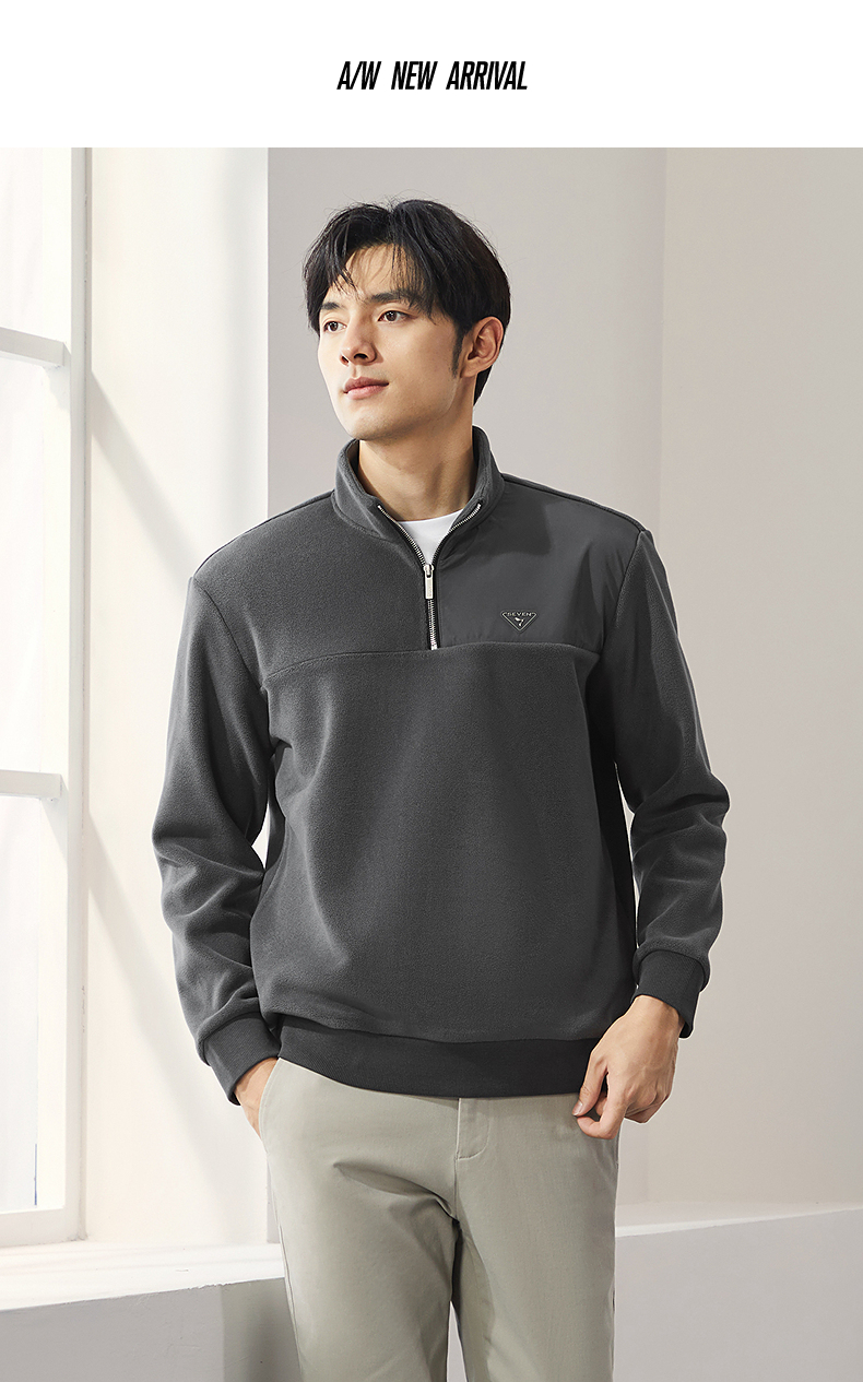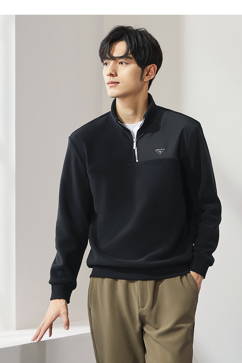 柒牌摇粒绒卫衣男士2024冬季新款半开立领宽松休闲中青年套头上衣 127W70600