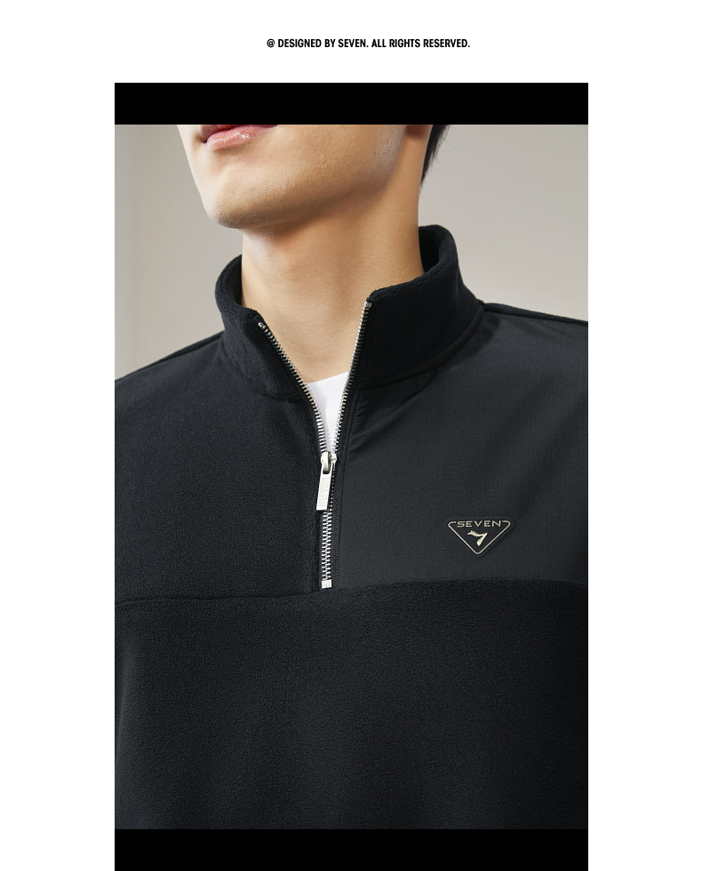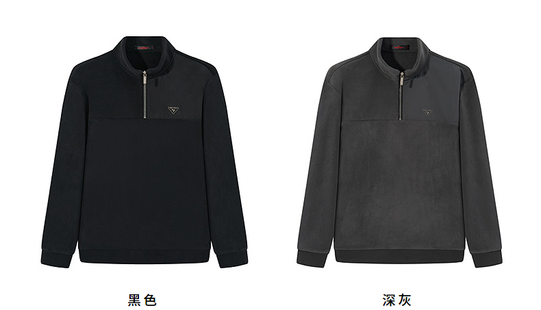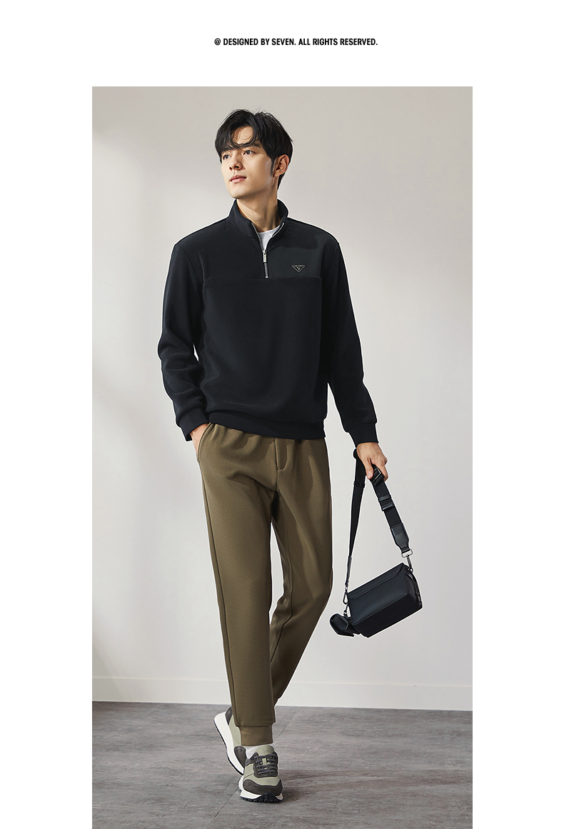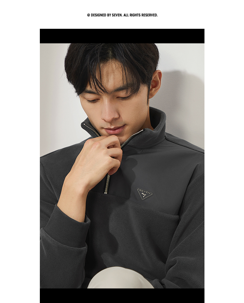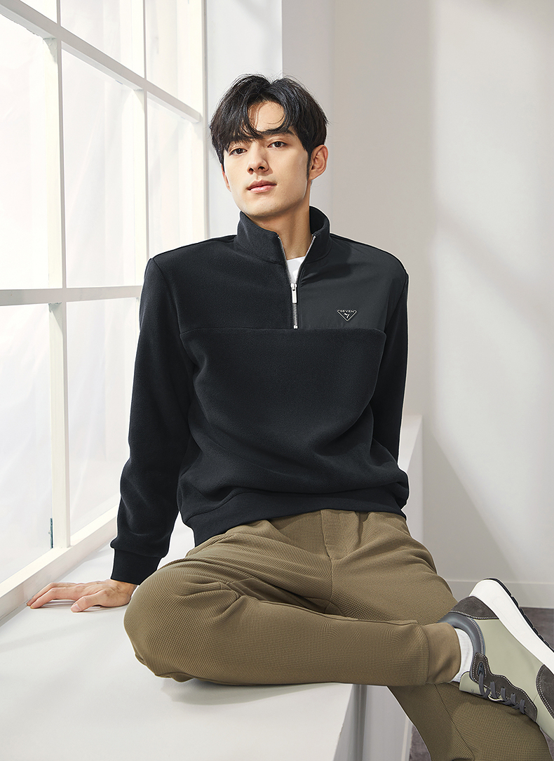 柒牌摇粒绒卫衣男士2024冬季新款半开立领宽松休闲中青年套头上衣 127W70600