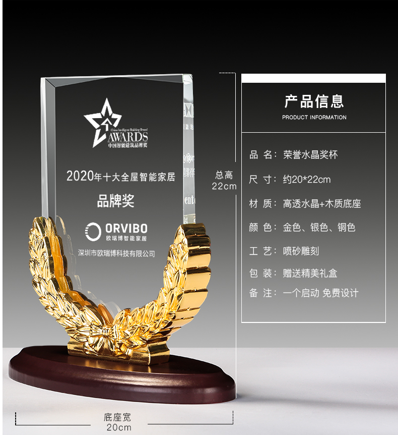 麦穗水晶奖牌授权牌年商会奖杯定制作创意刻字纪念合作经销商定做