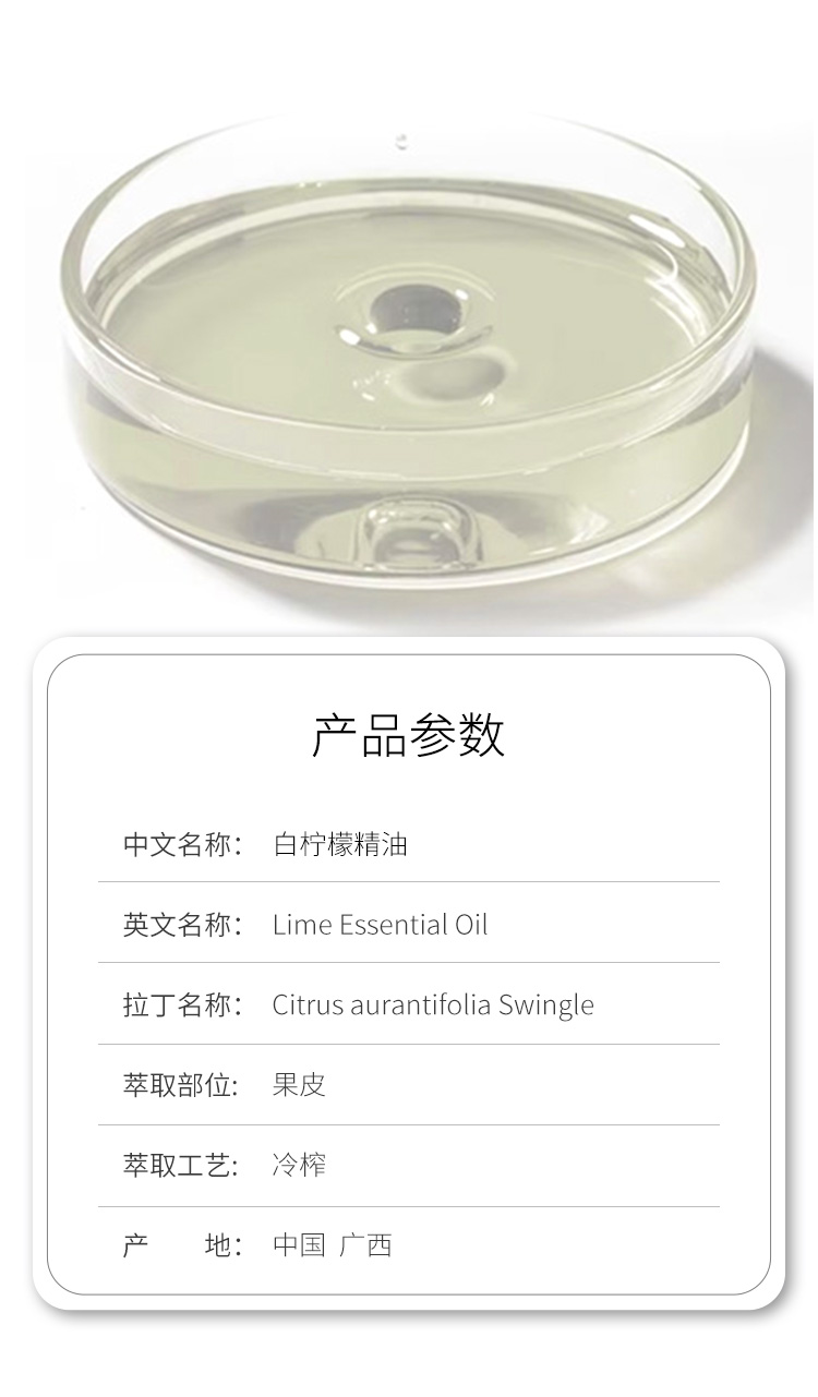 白柠檬精油Lime单方精油原料批发芳疗身体护理香薰调香大篷车精油