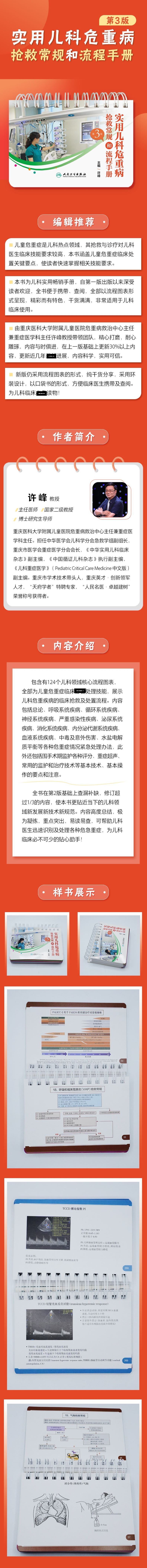 儿童重症领域是儿科热点领域,临床诊治技术发展迅速,部分内容亟待更新。在上版基础上更新30%以上,主要讲解儿科危重疾病的临床抢救及处置流程,内容包括总论、呼吸系统疾病、循环系统疾病、神经系统疾病、严重感染性疾病、泌尿系统疾病、消化系统疾病、内分泌代谢系统疾病、血液系统疾病、中毒及以外伤害、水盐电解质平衡等。全书继续以图表和流程图的方法呈现,增加操作视频等,简明易懂,好学好用。1.本手册为儿科畅销品种,致力打造精品。2.新版与时俱进,采用融合出版形式,增加操作视频等,使读者一目了然,实用易读。