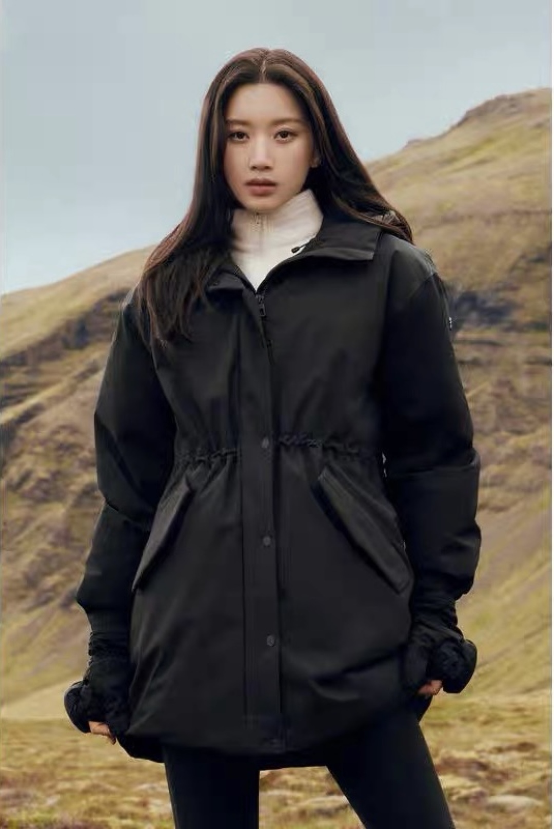 腰间内置弹力松紧抽绳收腰修身身材,无可挑剔的保暖单品。
