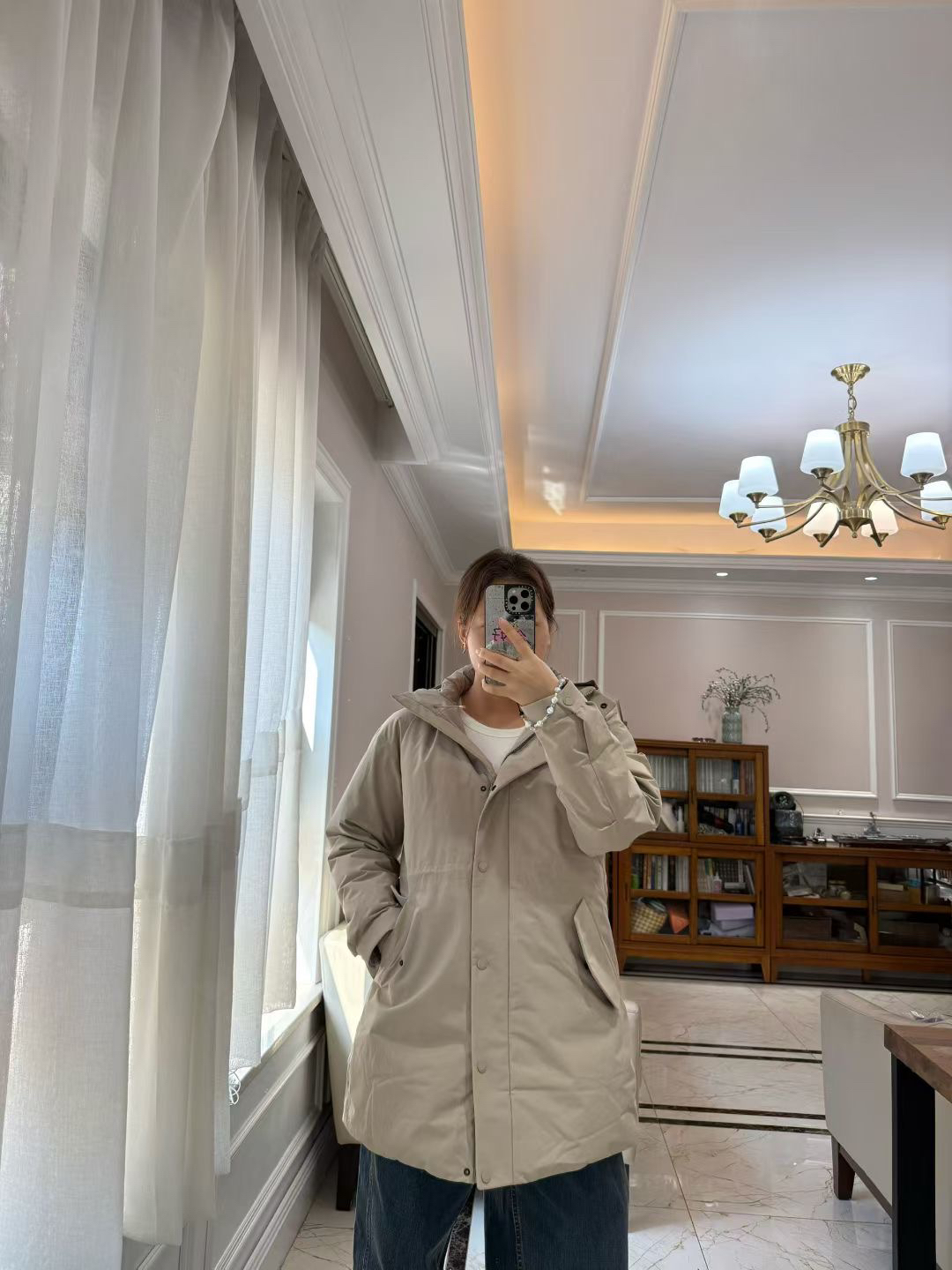 老嫂子167/138穿卡其灰90效果如图,好看的不要不要的。我穿上合身哈,如果我内搭厚衣服肯定需要95码,给参考。简洁大气,轻盈保暖,夯实耐造[合十][合十][合十]