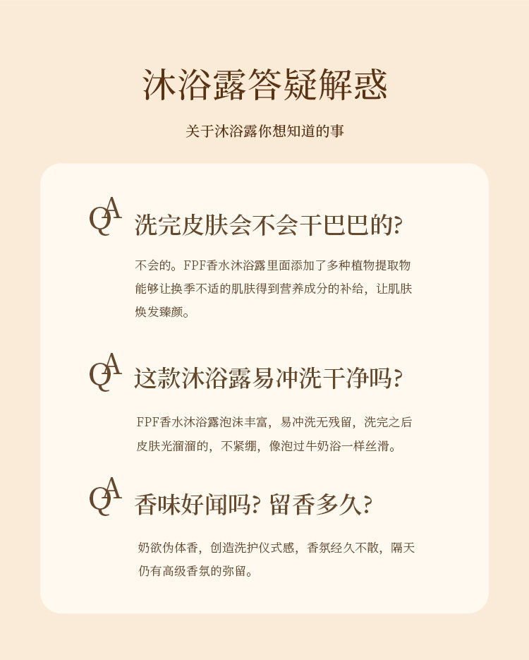 所以FPF的沐浴露才会和香水一样就连香调都分前中后,拒绝千篇一律的街香 !仿佛洗的不是澡,是沉浸在香味里的氛围感~