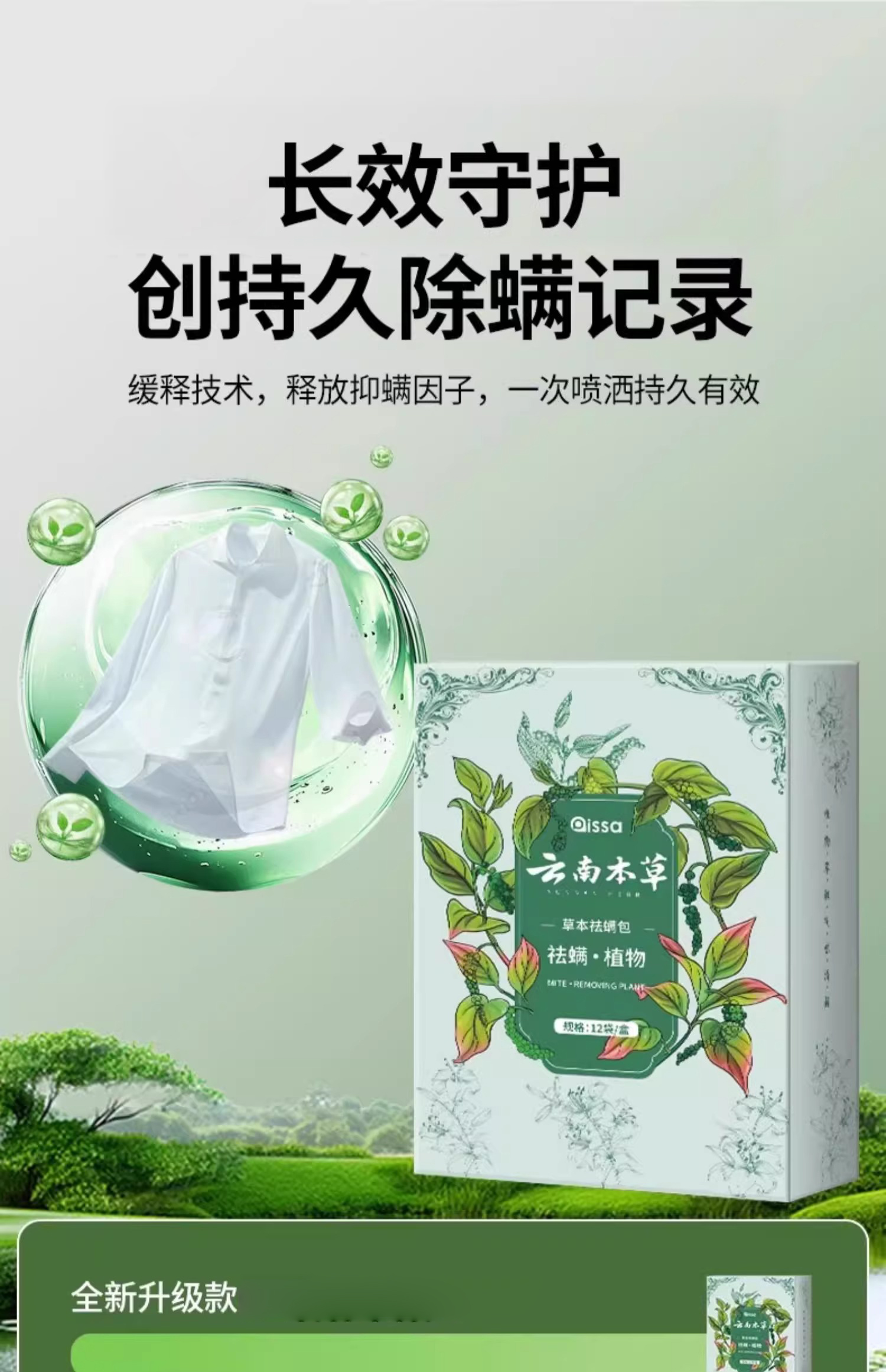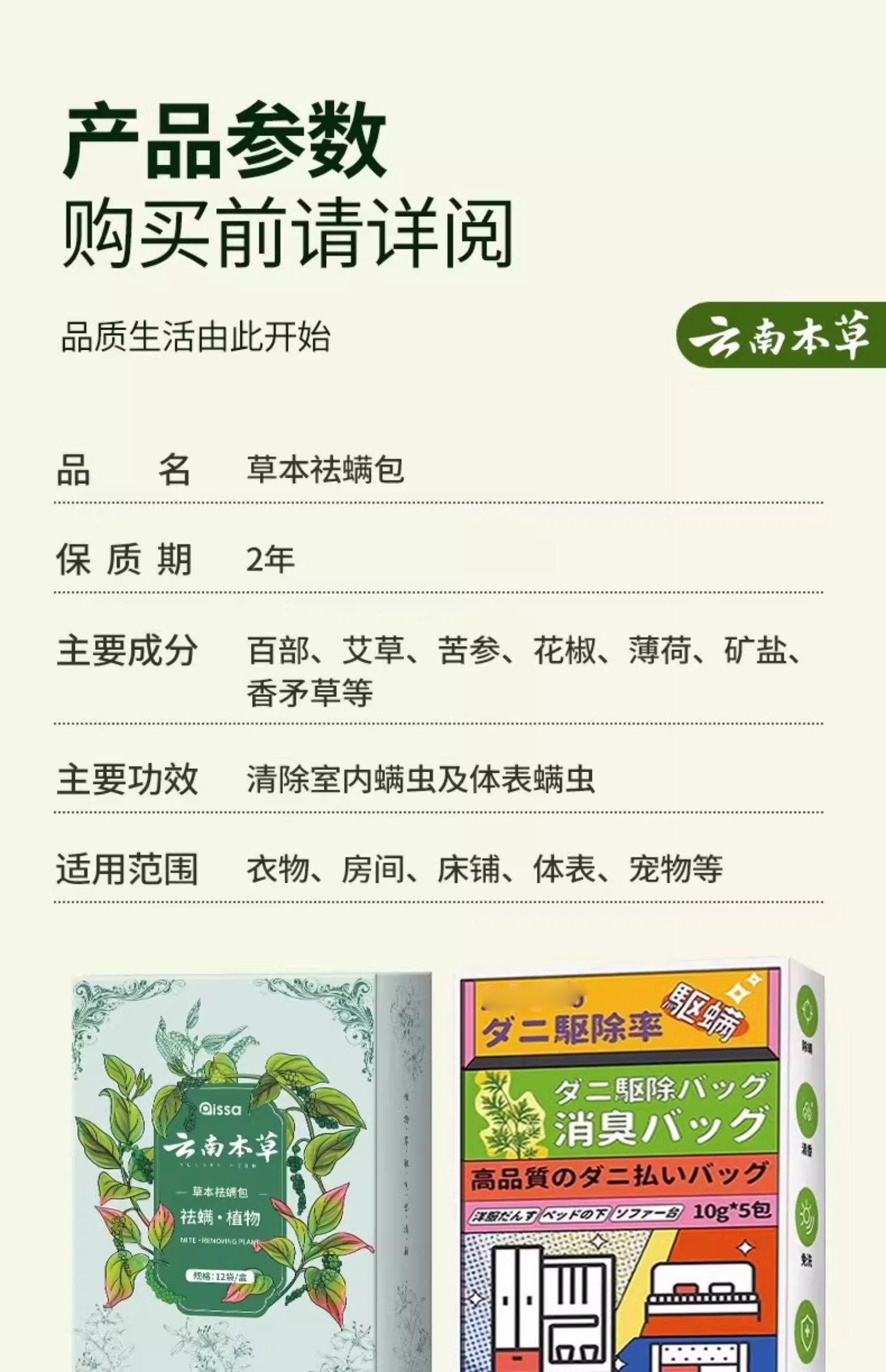 云南本草除螨包 植物草本 床上用防螨虫包 衣柜神器床垫贴去除蝻剂 12袋/盒