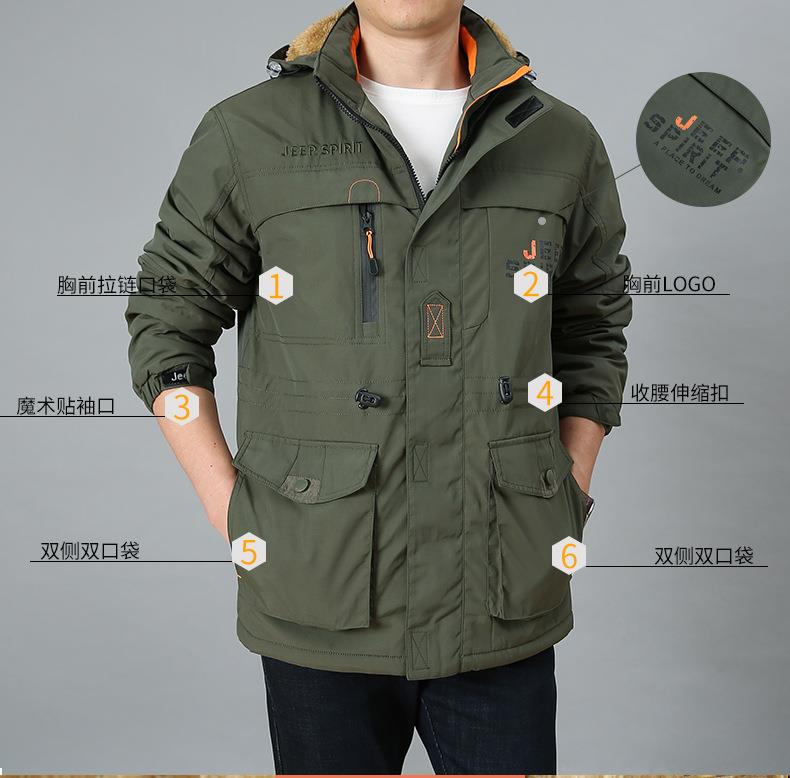 JEEP SPIRIT男外套秋冬装夹克宽松大码男装加绒棉服HL6632