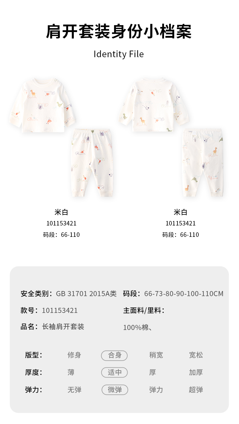 【春秋贴身宝宝套装】卓儿宝宝长袖打底衫纯棉家居服婴儿衣服适合3个月-5岁