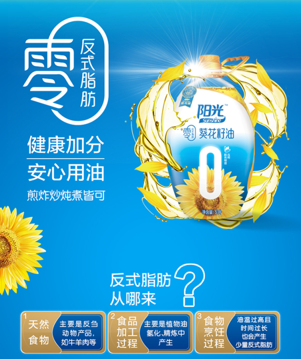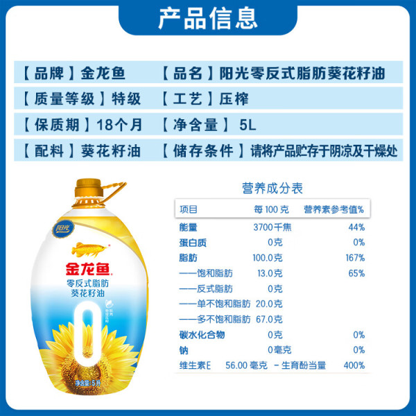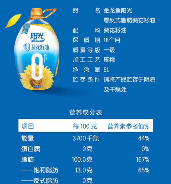 金龙鱼阳光零反式脂肪葵花籽油5L