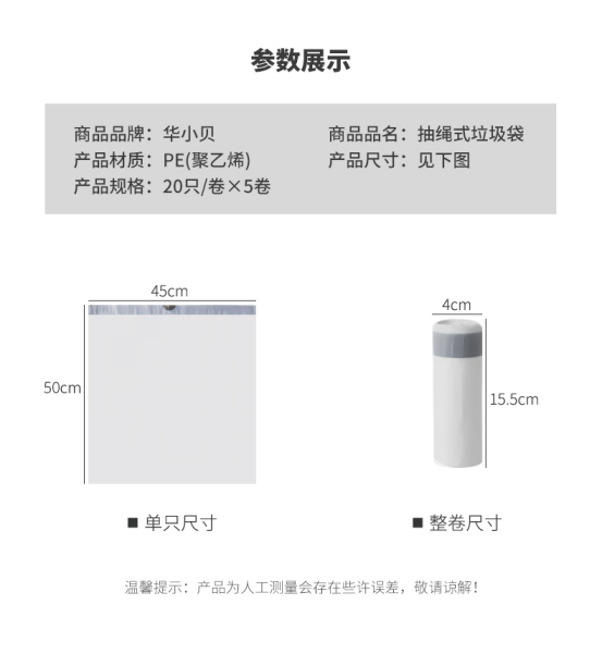 【品名】华小贝加厚耐穿刺抽绳垃圾袋