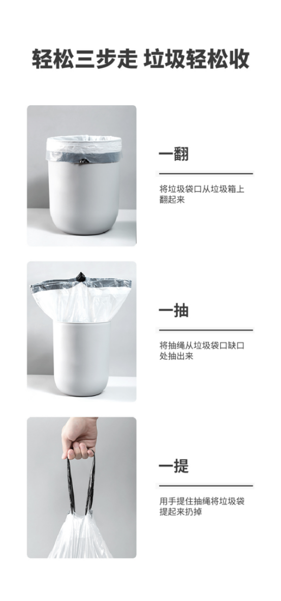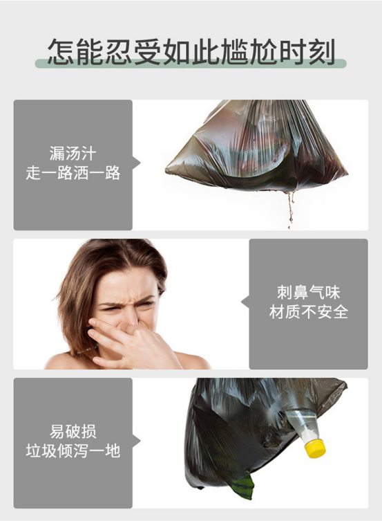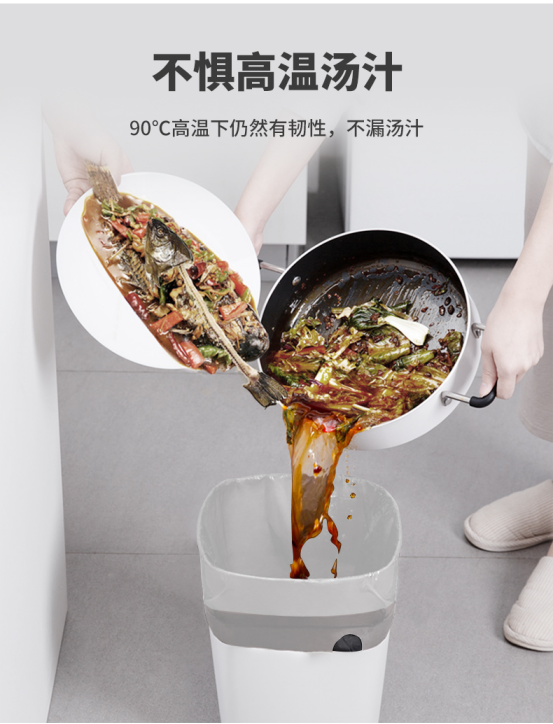 优质原料,90℃的高温下仍然保有韧性,锁住垃圾不漏残余