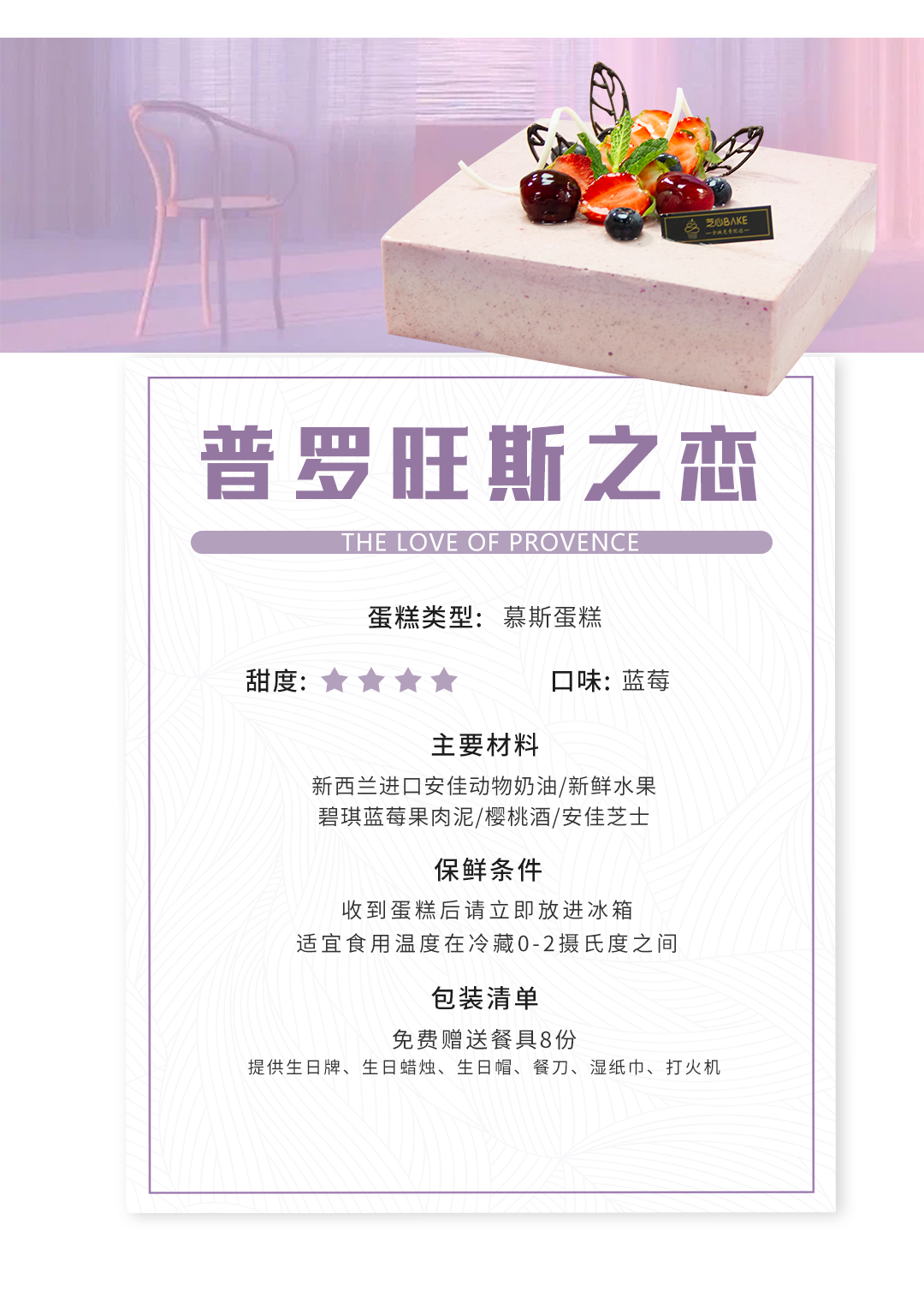 【普罗旺斯之恋】生日蛋糕- 熏衣草迎风绽放 微微清冽的蓝莓 混合着滴洒的酒香 芬芳穿山过野