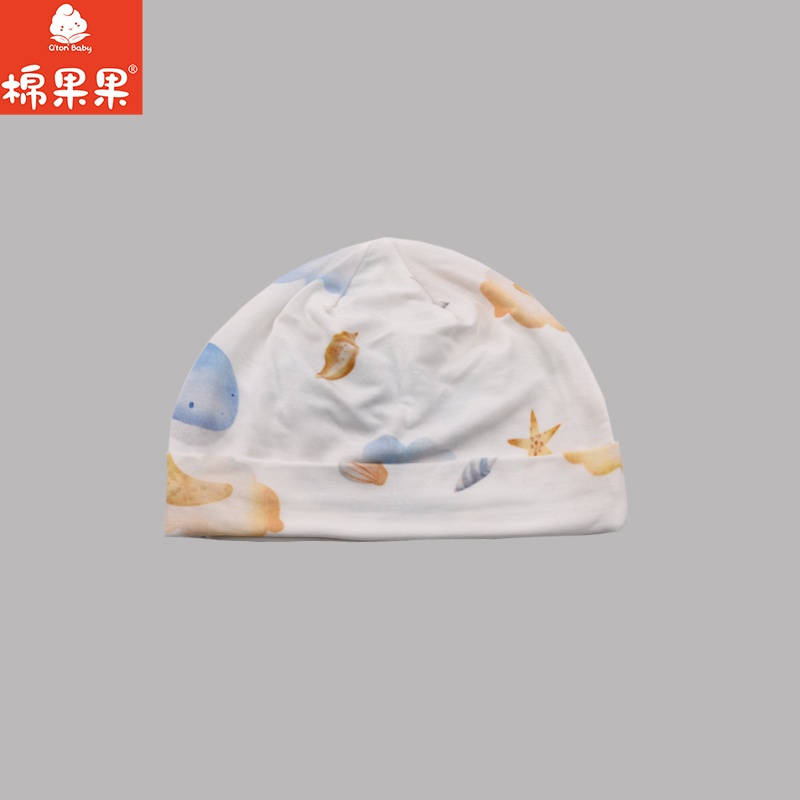 棉果果夏季男童女童婴儿帽家居防蚊5A抗菌莫代尔出生帽M204400400065