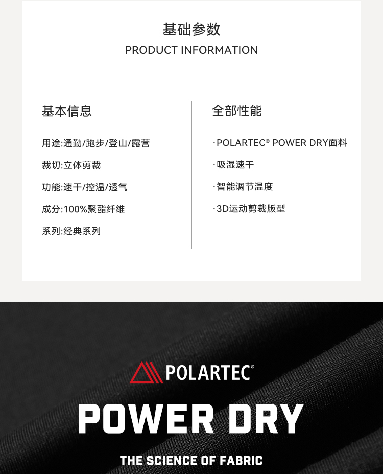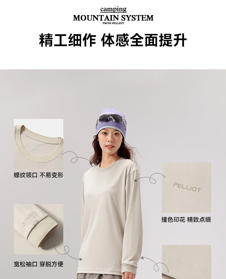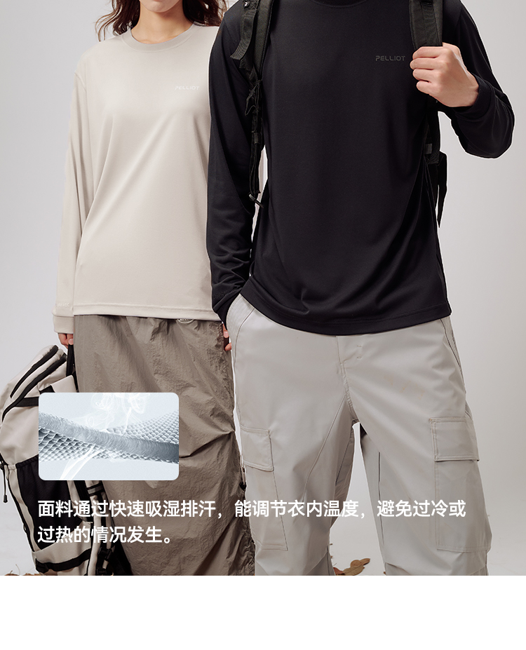 伯希和户外快干T恤男Polartec powerdry圆领长袖上衣透气打底衣女