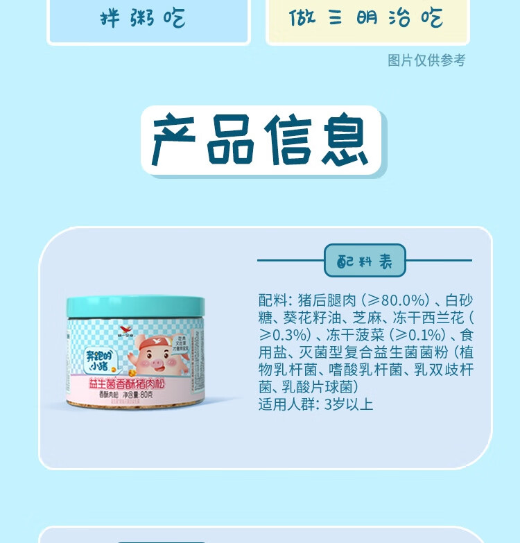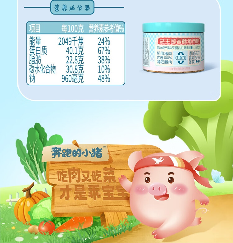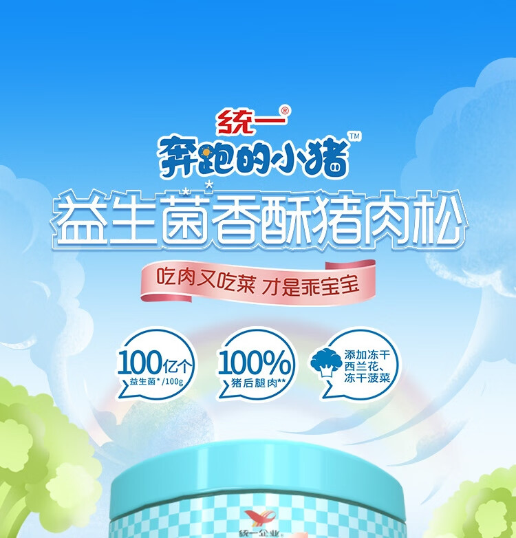 【统一】奔跑的小猪益生菌*香酥猪肉松宝宝零食拌饭 80g/罐 2罐(6个月)