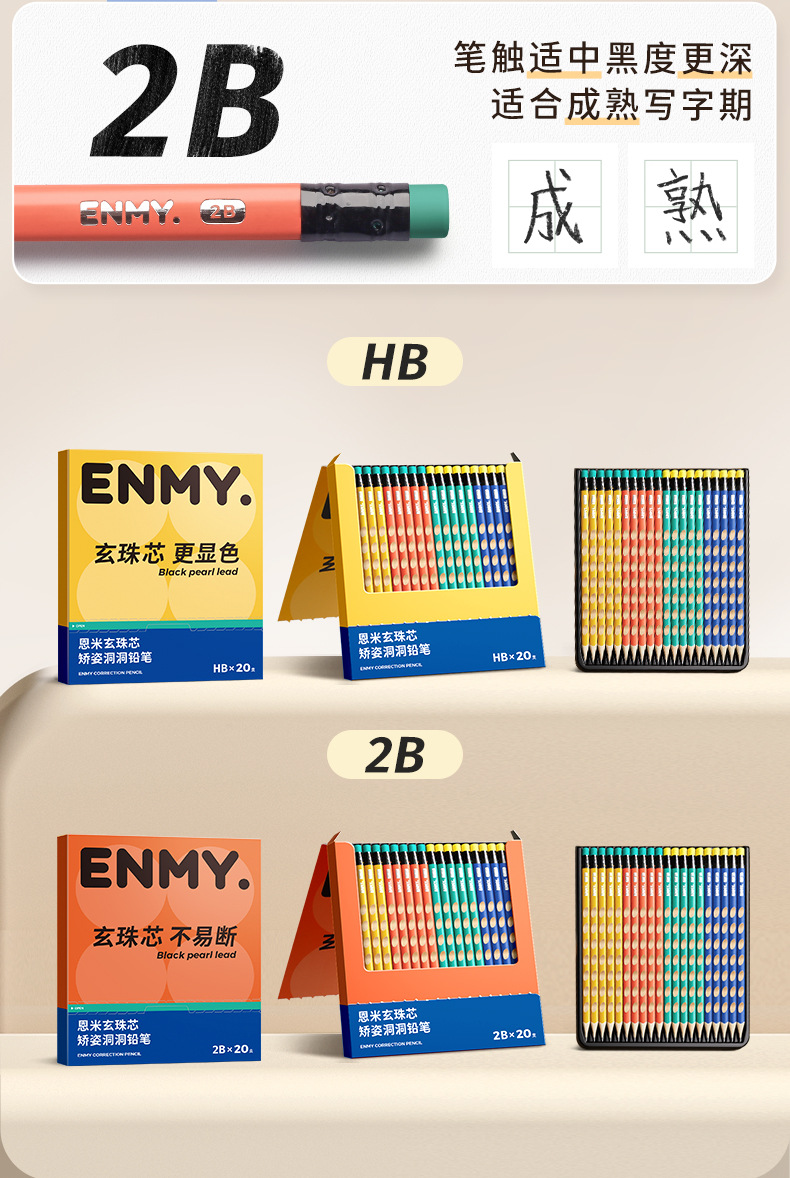 恩米ENMY玄珠芯洞洞铅笔20支盒装矫姿铅笔安全显色不易断儿童铅笔