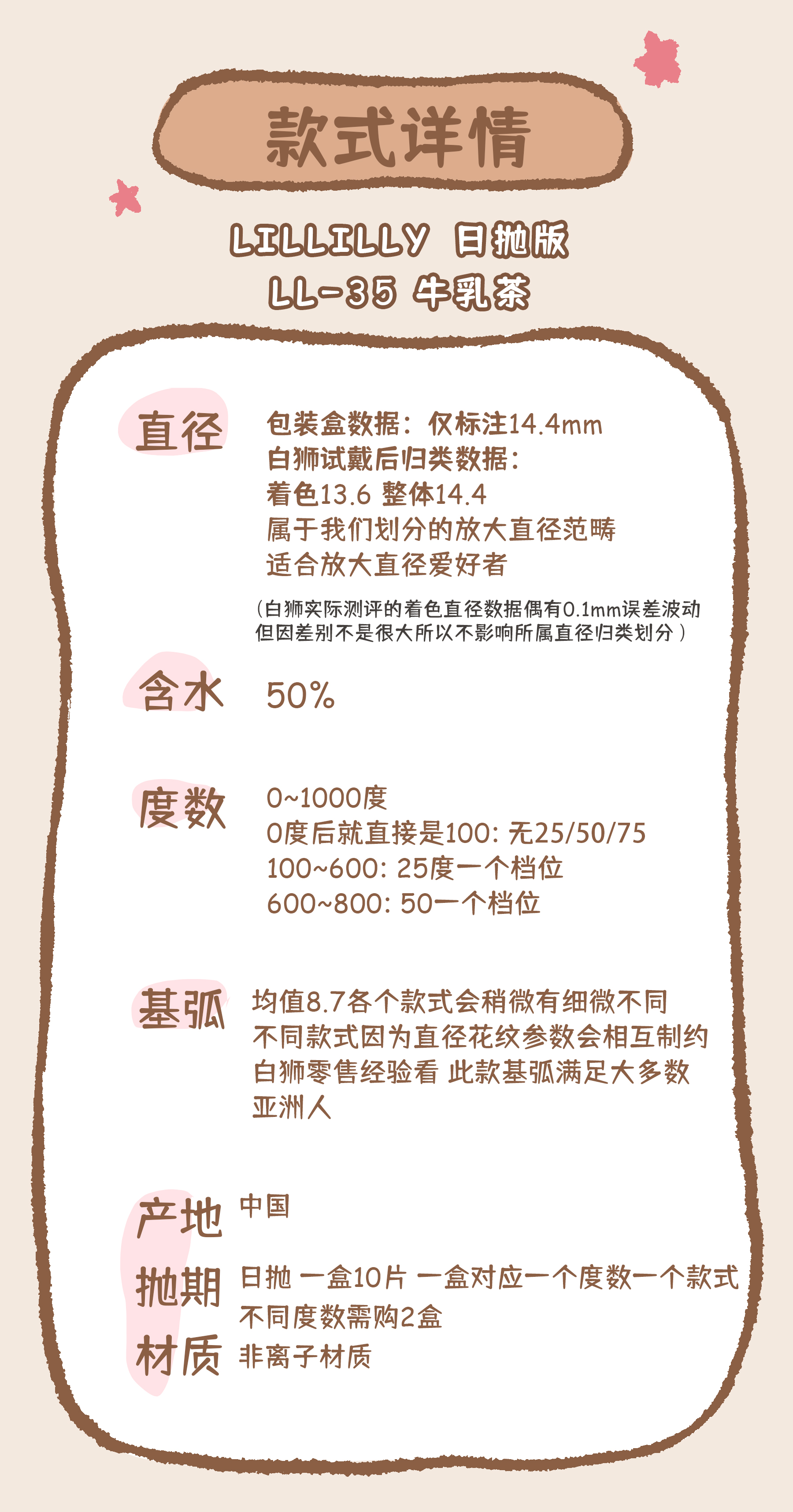 Lillilly旗下 · LL-35 牛乳茶|日抛10片装 14.4mm放大直径 |DK旗下新国货日抛品牌