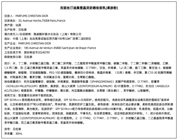 Dior迪奥 全新迪奥雪晶灵防晒妆前乳