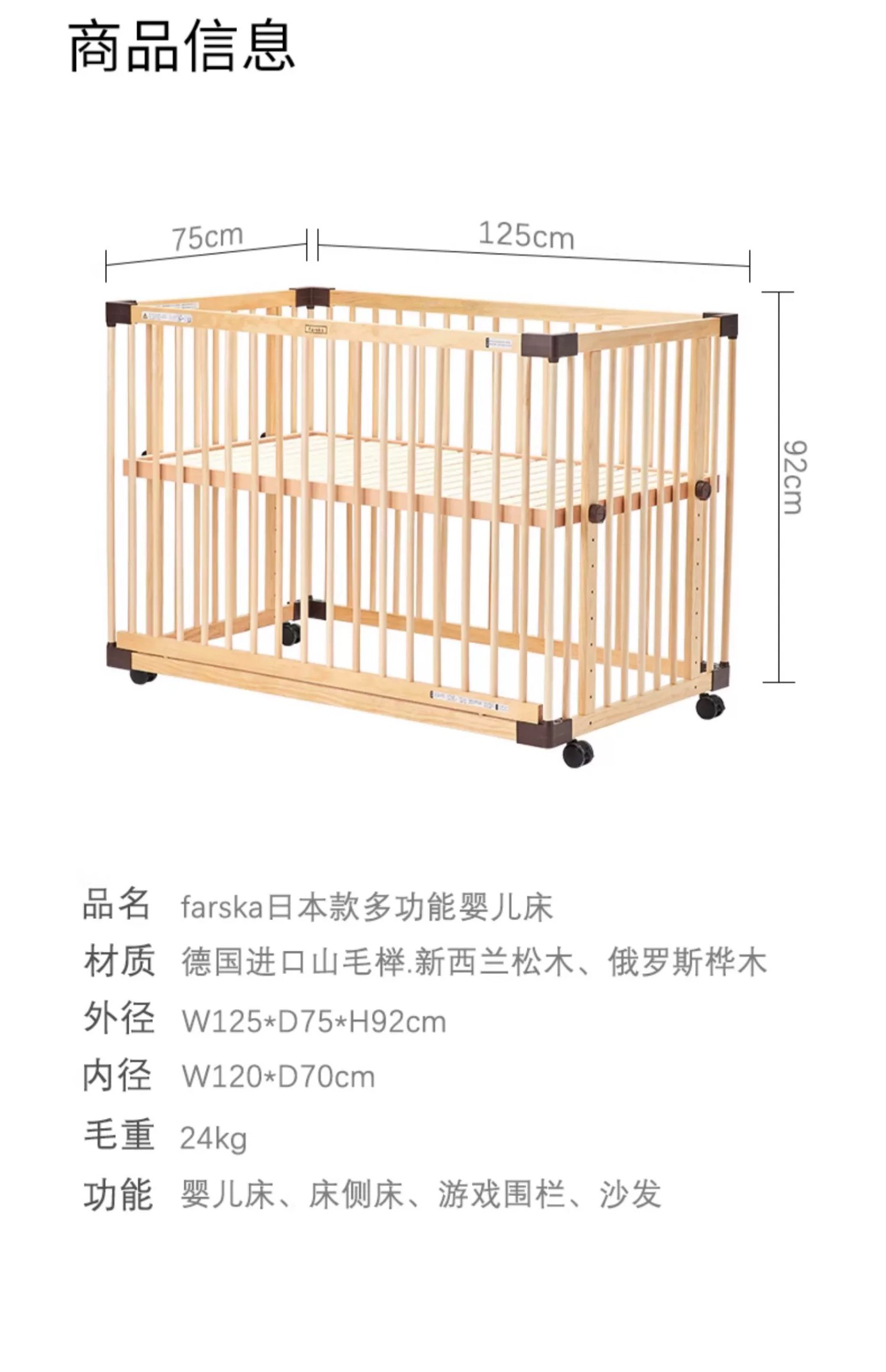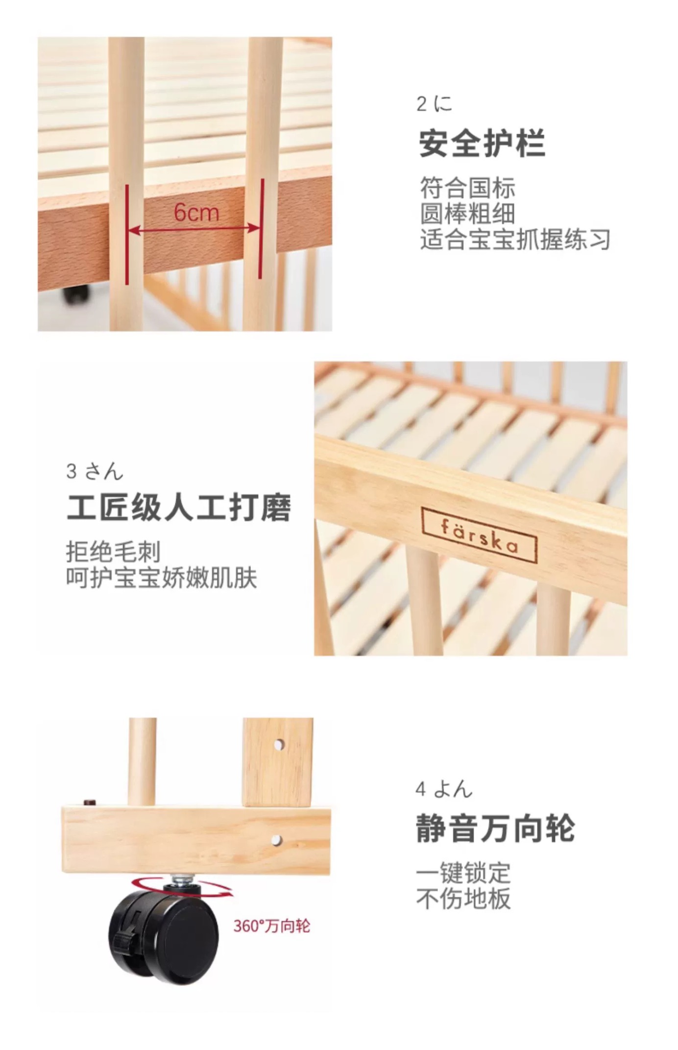 【品牌直供】日本farska日本款(松木) 婴儿床