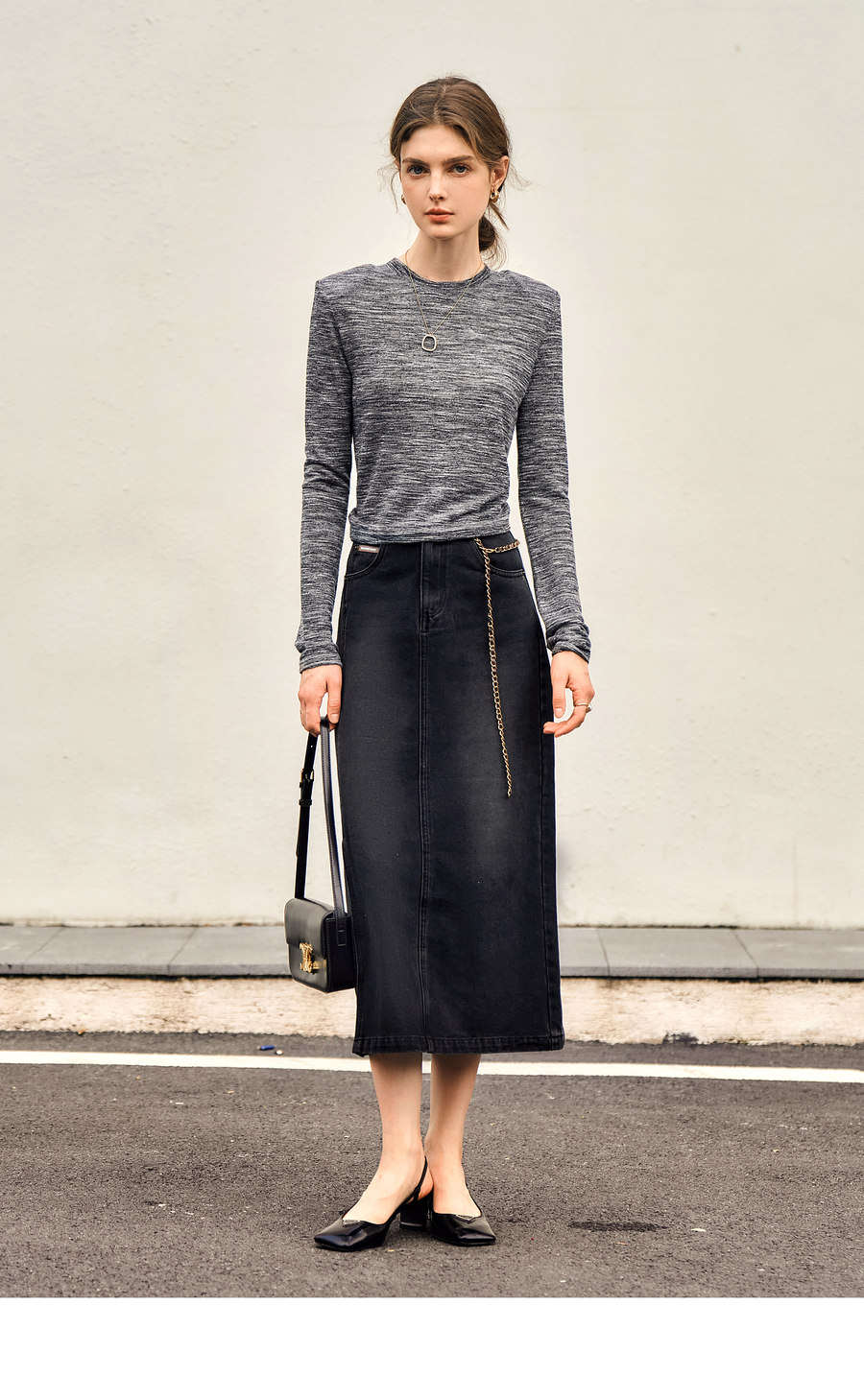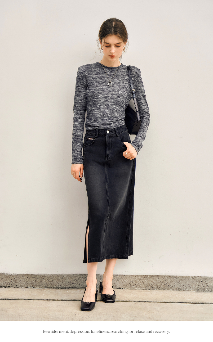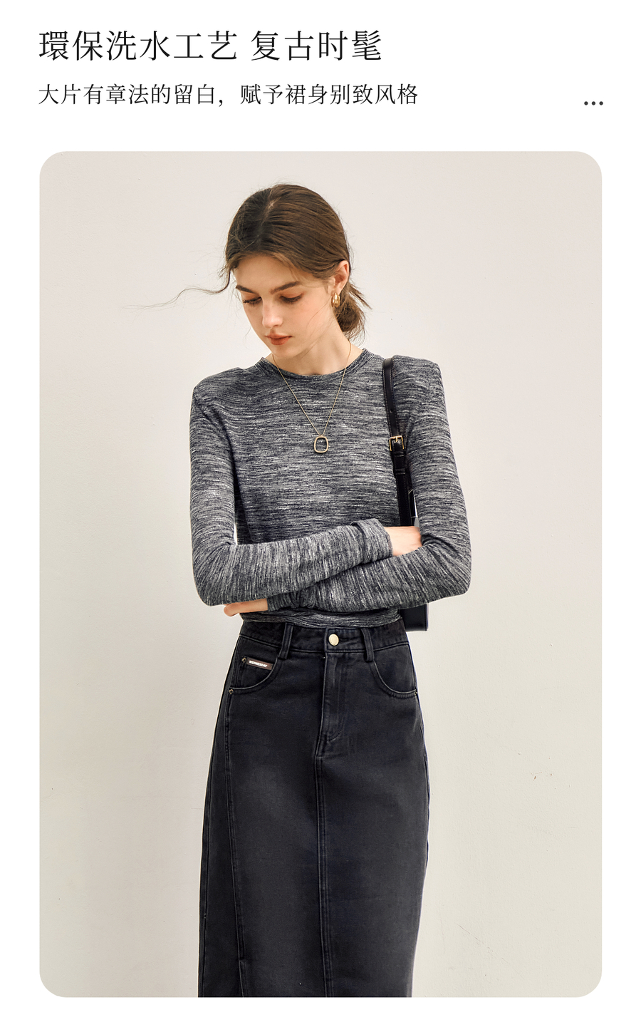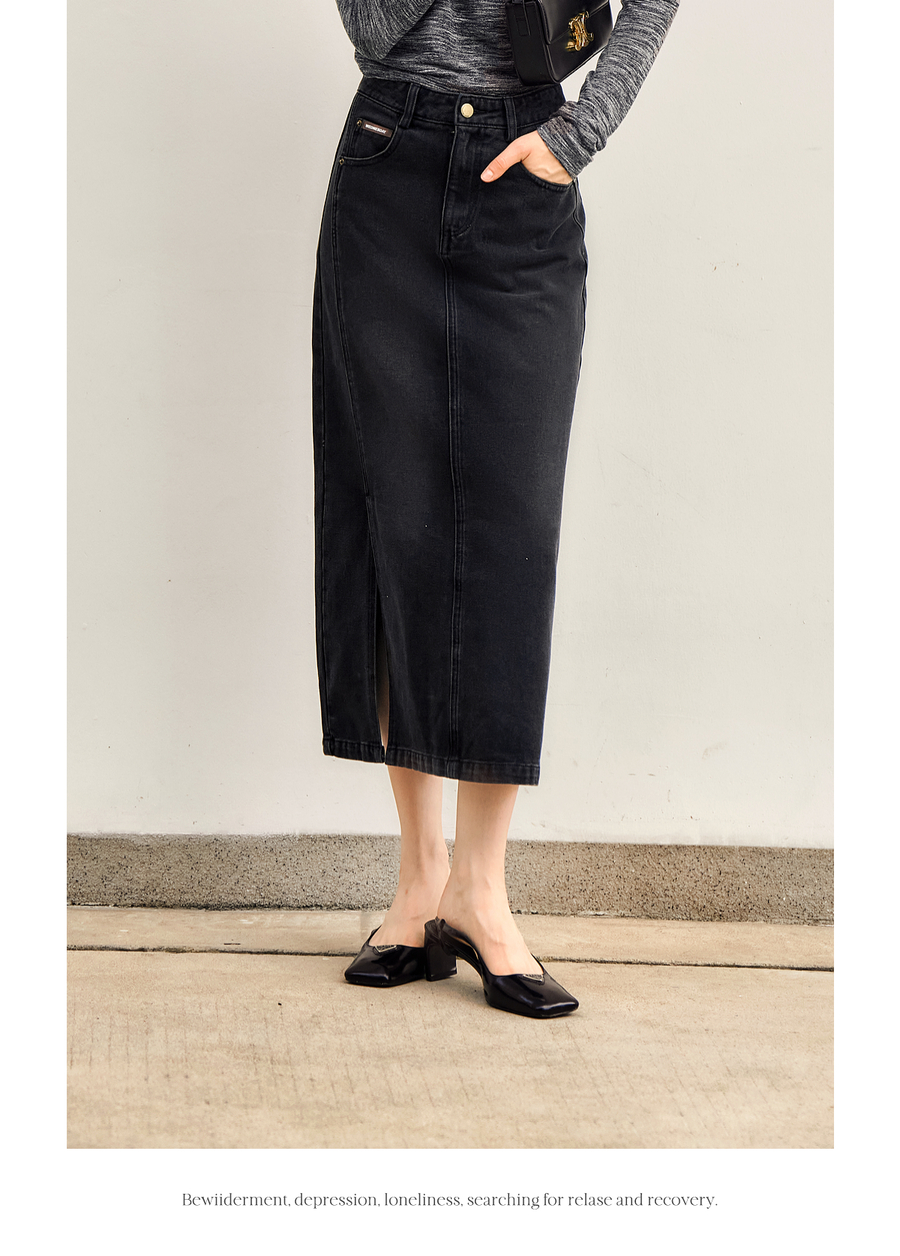 OLrain欧芮儿黑色牛仔半身裙女春季2025新款通勤休闲侧开叉直筒裙