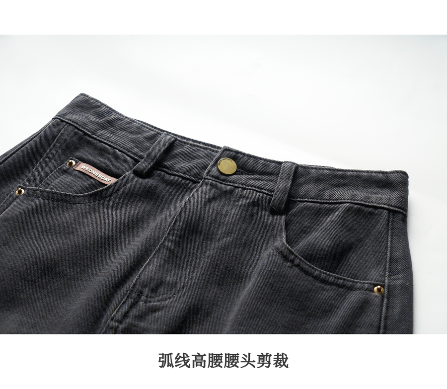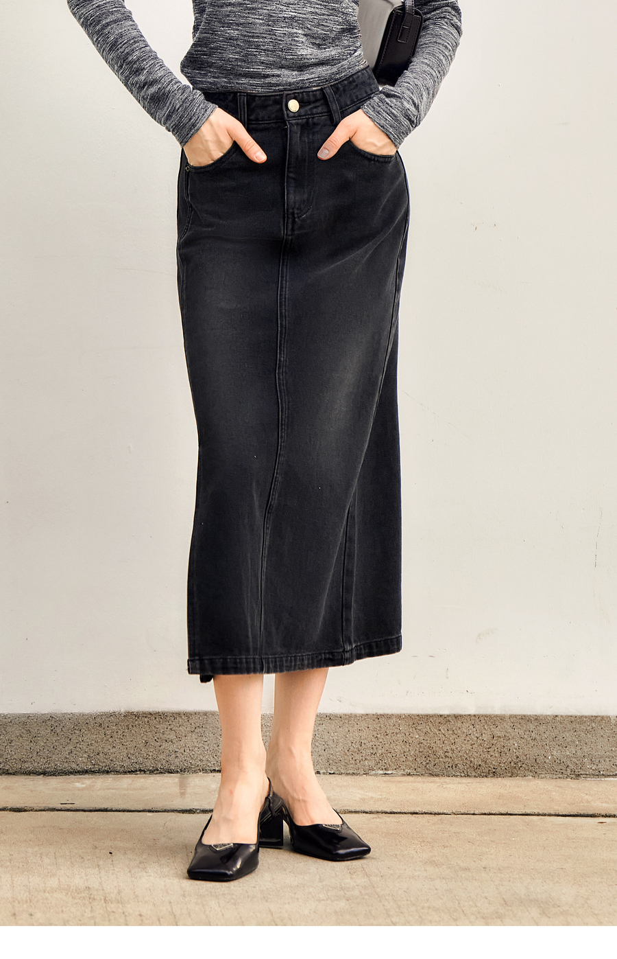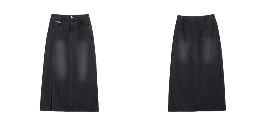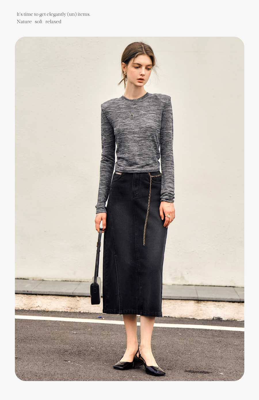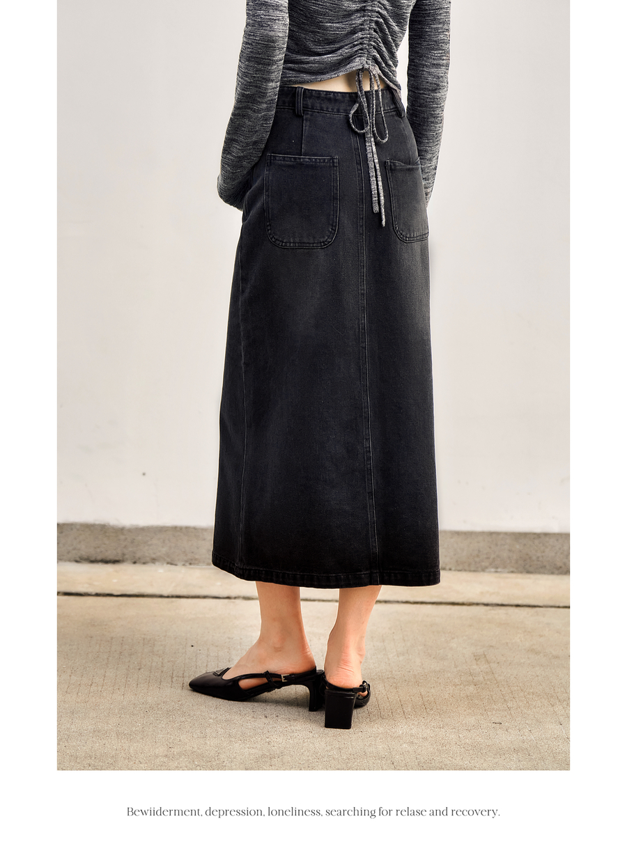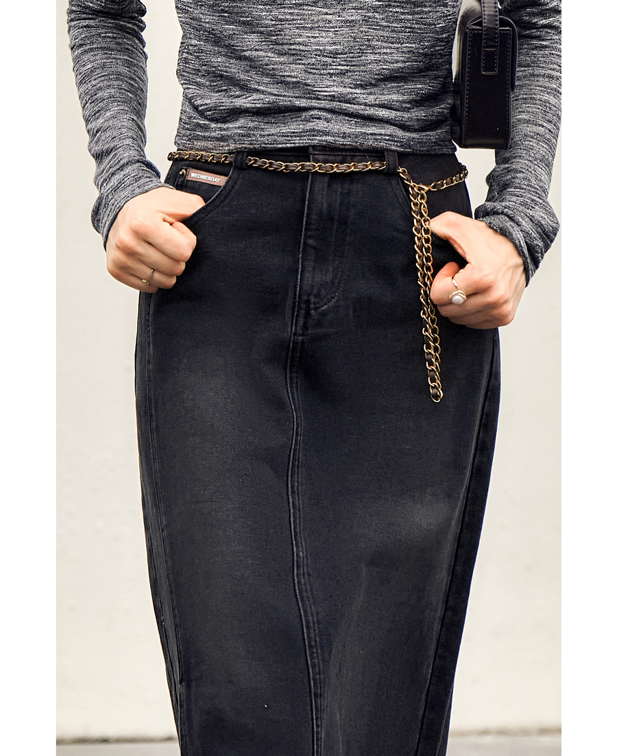 OLrain欧芮儿黑色牛仔半身裙女春季2025新款通勤休闲侧开叉直筒裙
