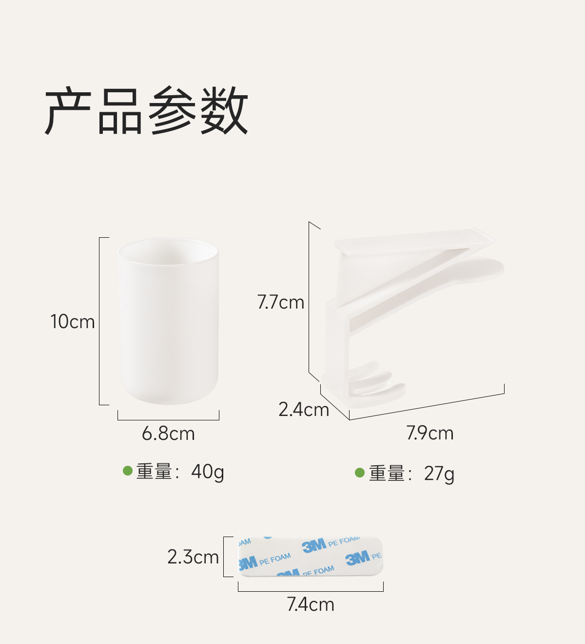 FaSoLa牙刷置物架防尘卫生间壁挂式免打孔牙缸漱口杯套装