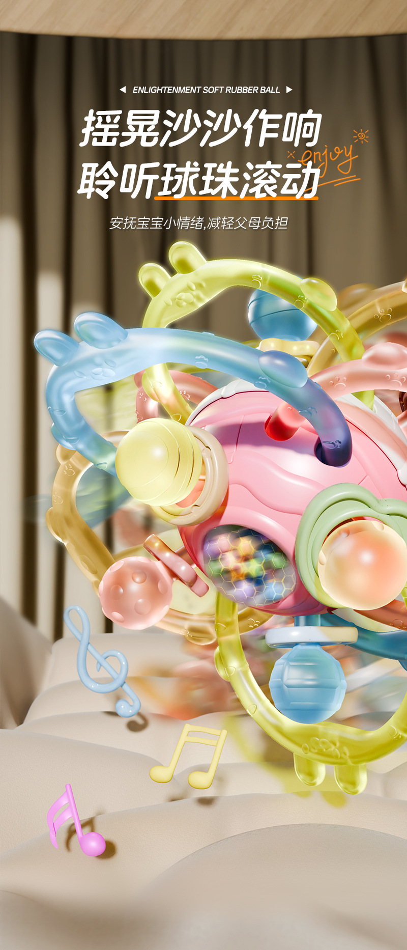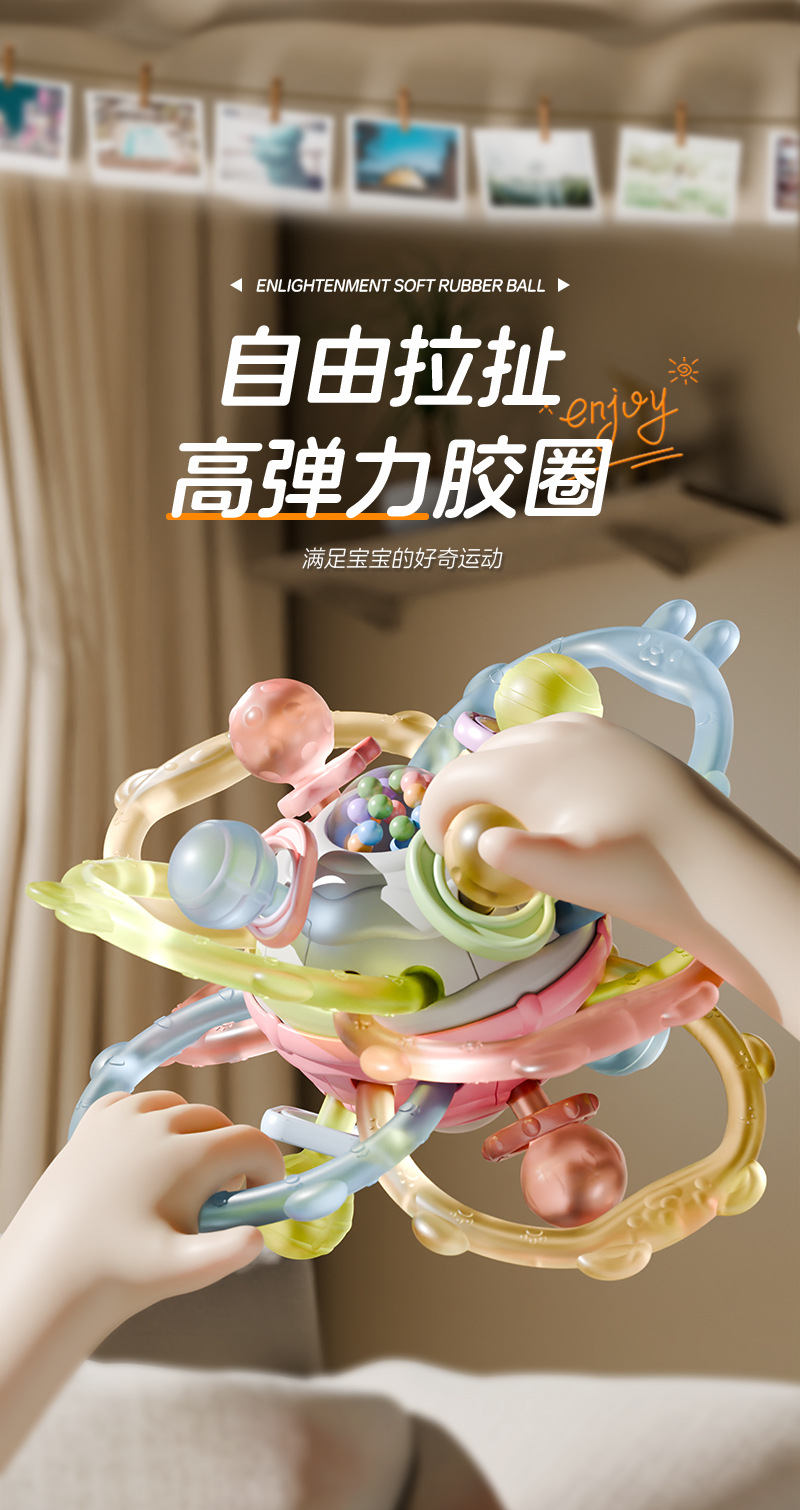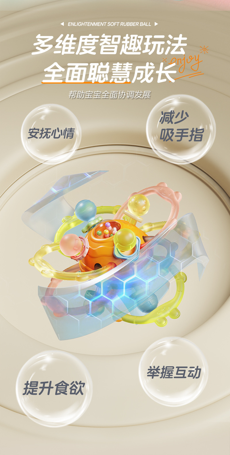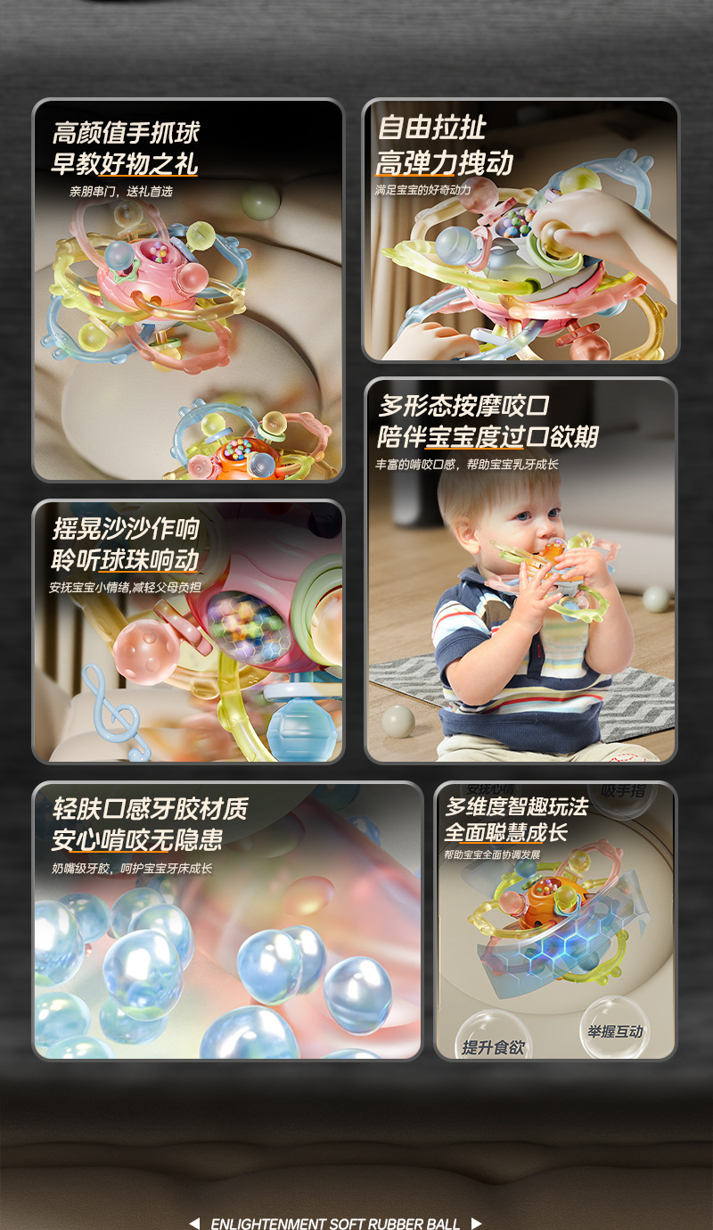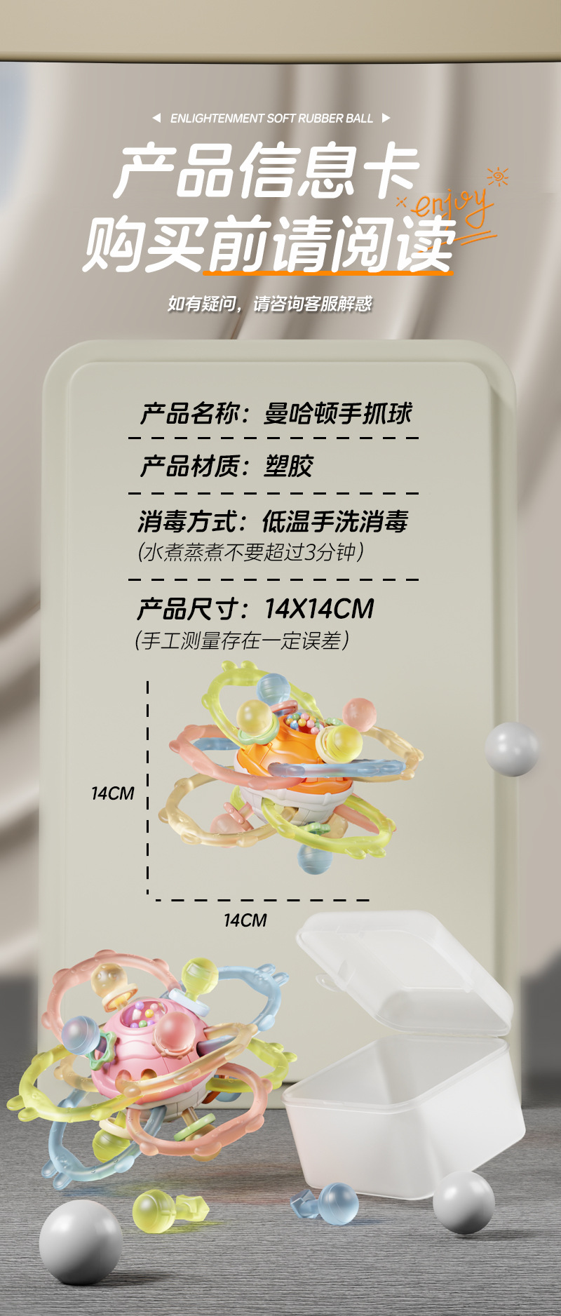 【赠收纳盒】【可健康循环使用的软角球】婴儿曼哈顿手抓球婴儿玩具 硅胶可咬牙胶 小宝宝3到6个月握磨玩具 可水煮蒸勿超3分钟