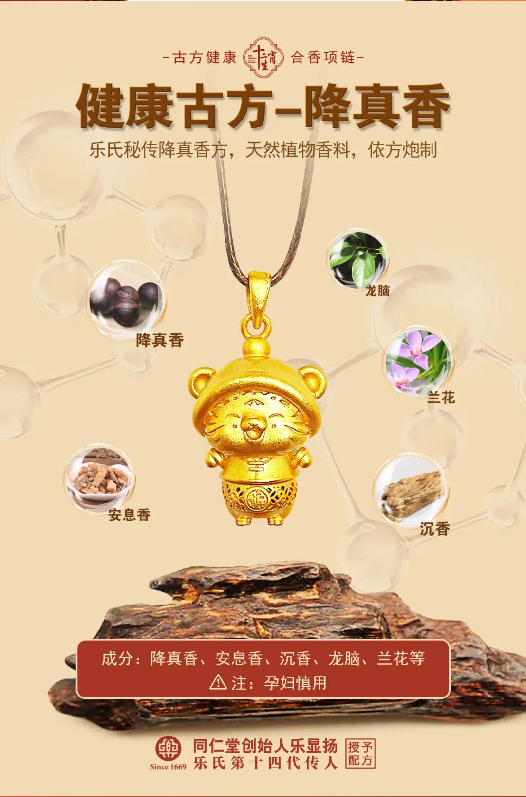 每款生肖吊坠均为铜镀金材质,搭配降真香韵合香珠,尺寸小巧贴合颈间,寓意精准。