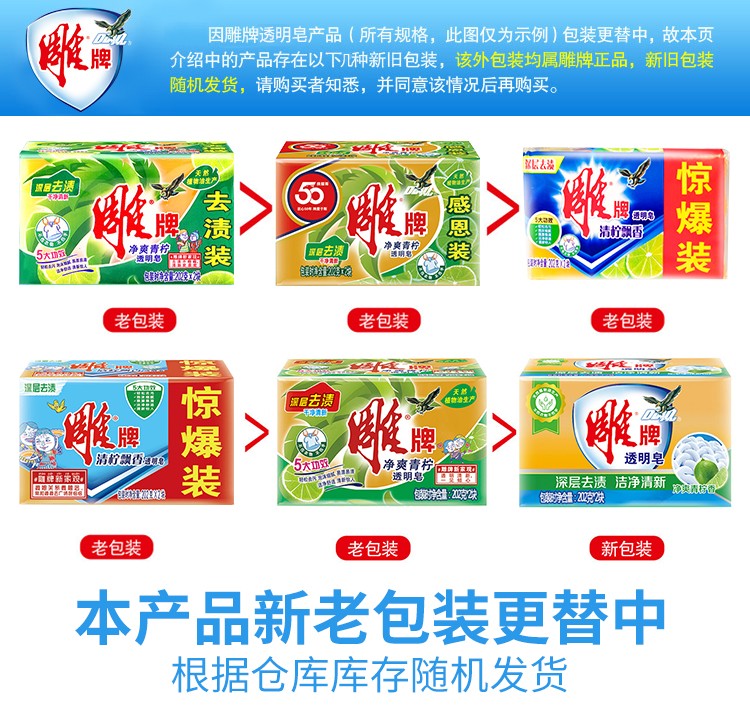 雕牌肥皂【12块】202g*2块*6组透明皂洗衣皂深层去渍青柠飘香不伤衣物