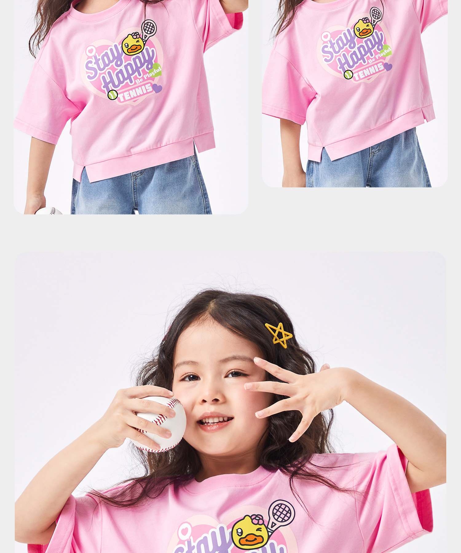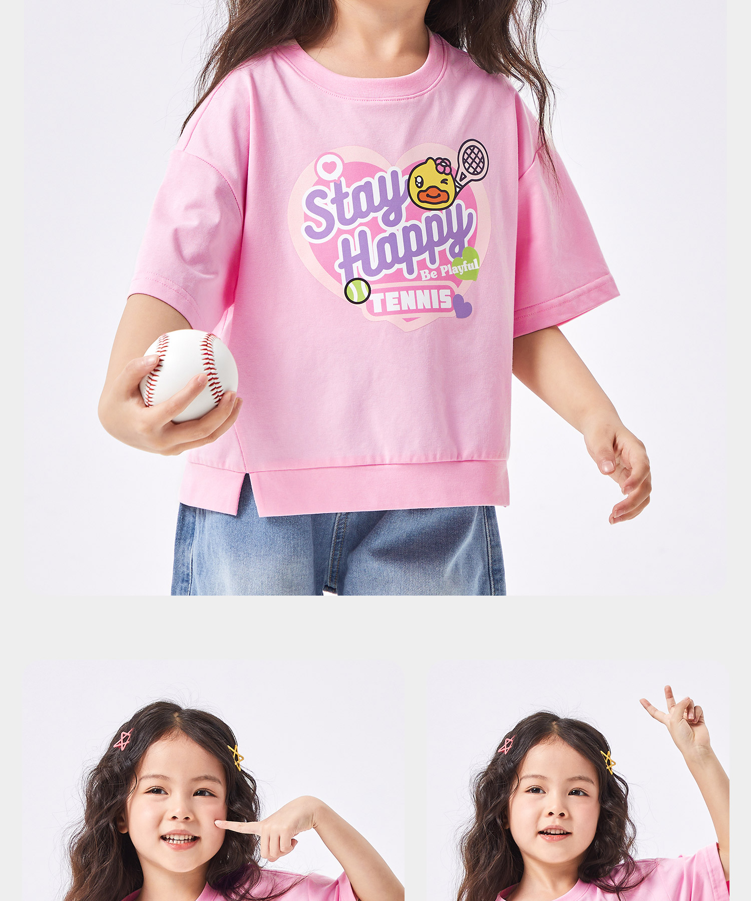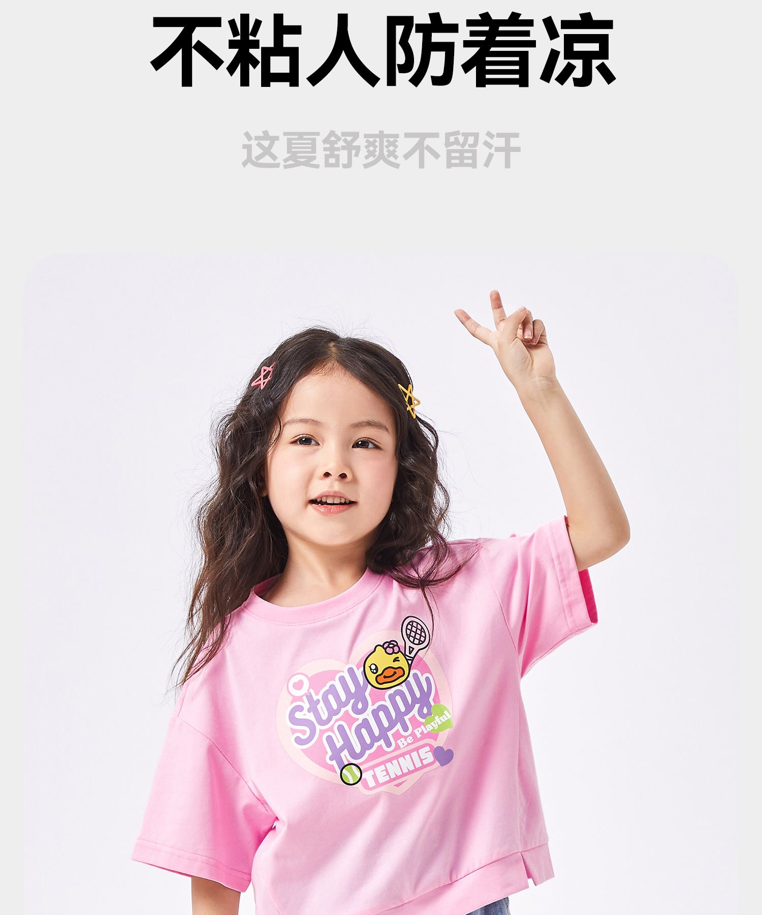 【冰感】B.Duck小黄鸭童装夏季女童短袖T恤105-150 FF2501069