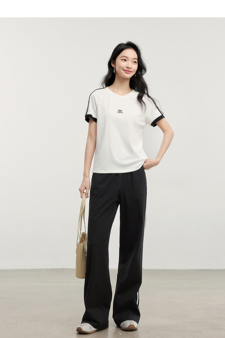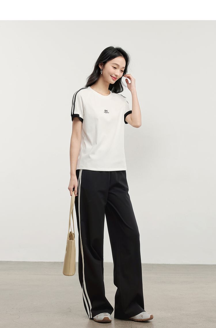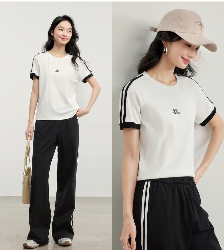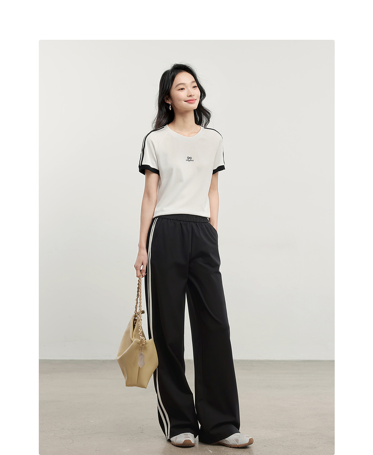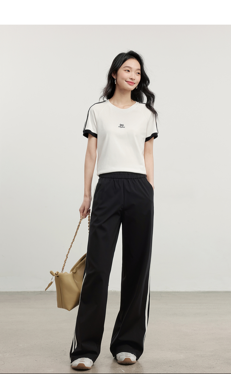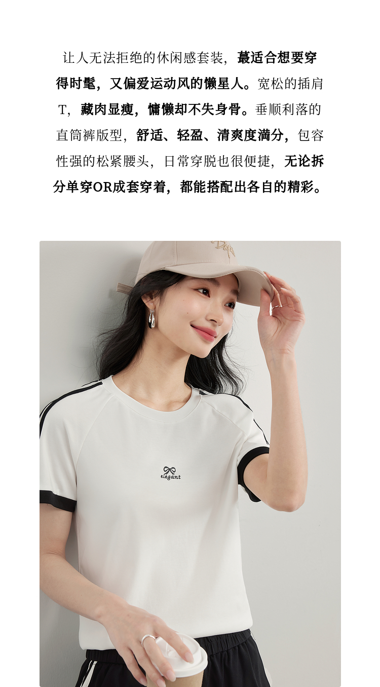 【专属特价】熙世界通勤运动风短袖T恤套装女2025夏季新款宽松休闲裤子两件套