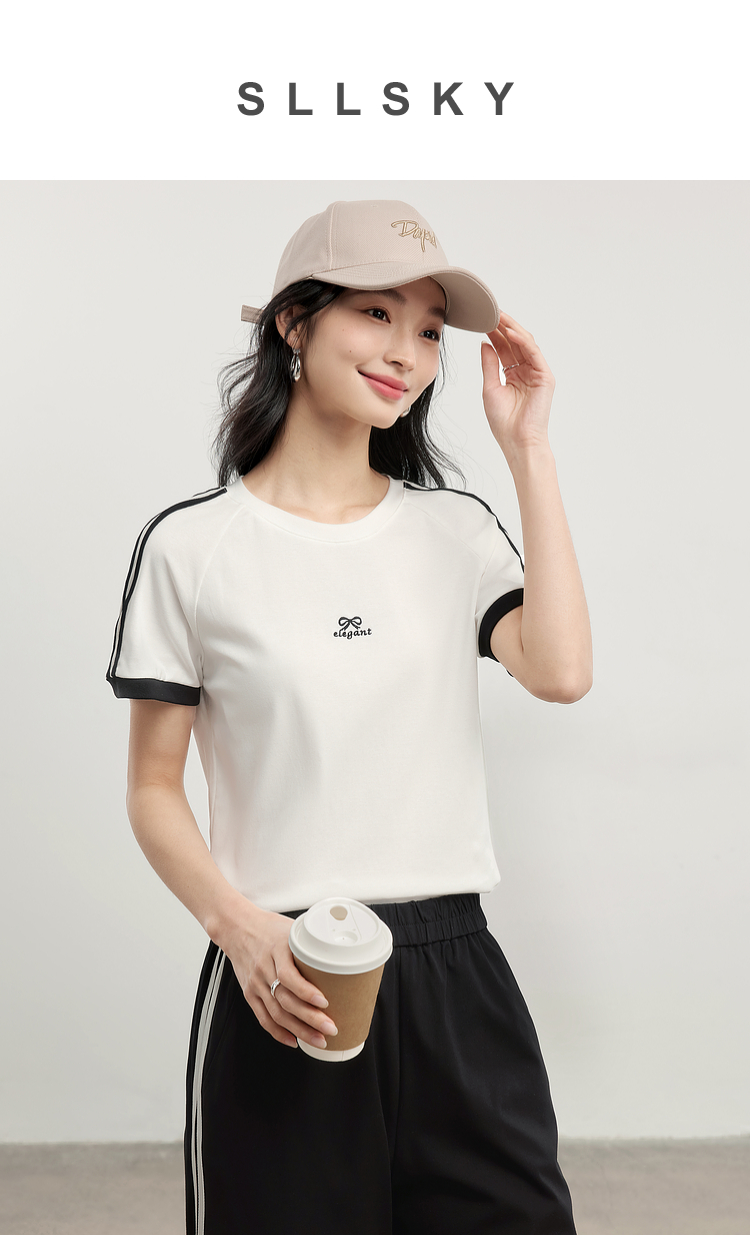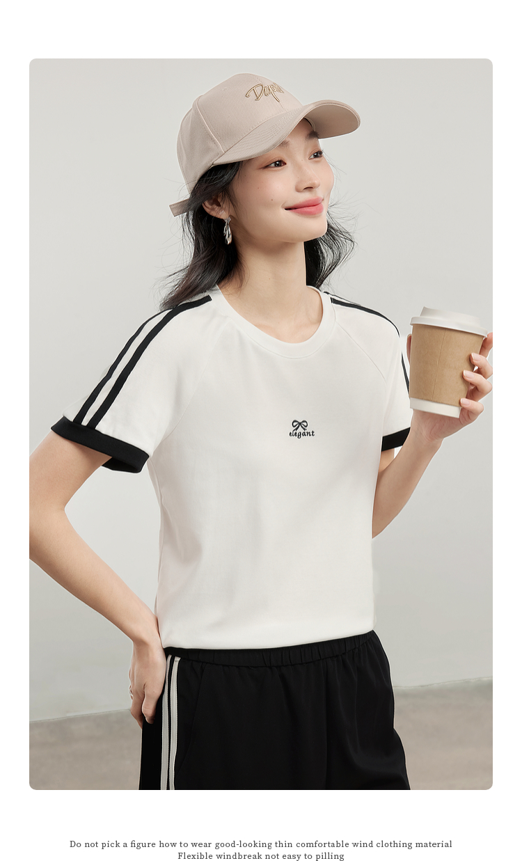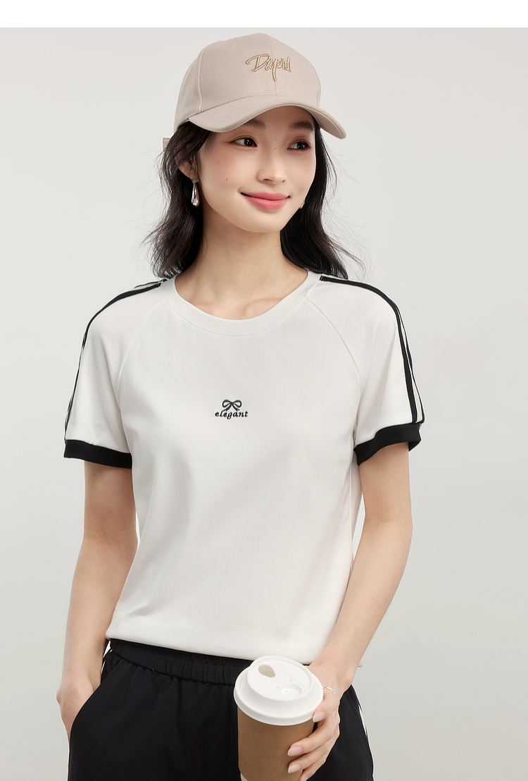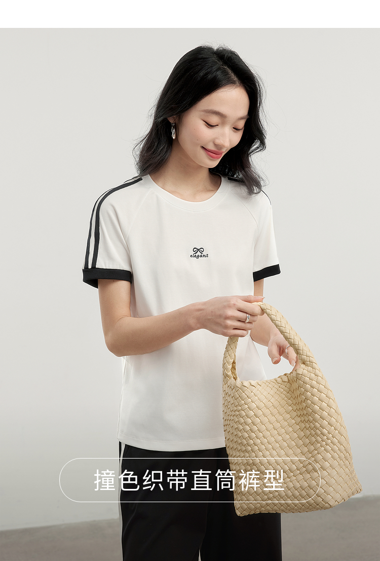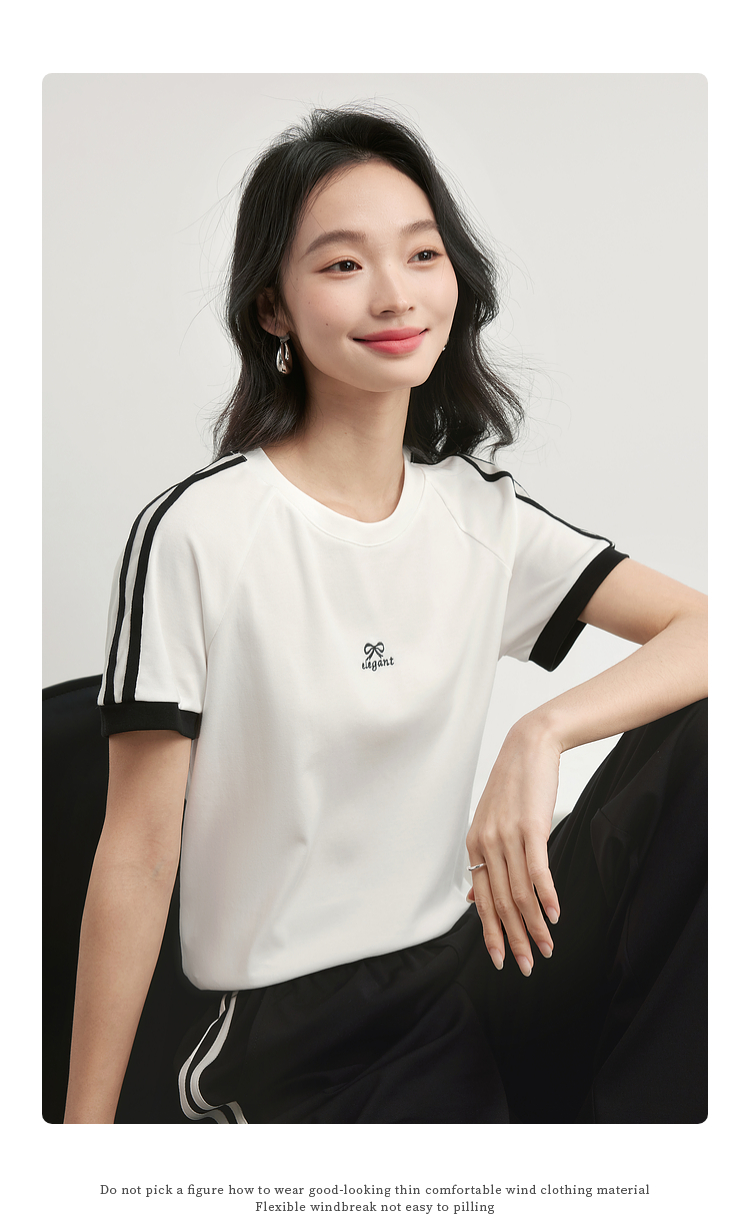 【专属特价】熙世界通勤运动风短袖T恤套装女2025夏季新款宽松休闲裤子两件套